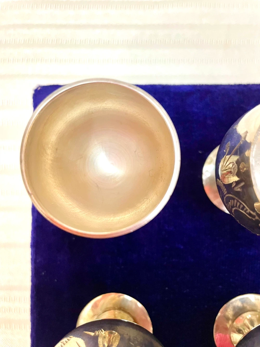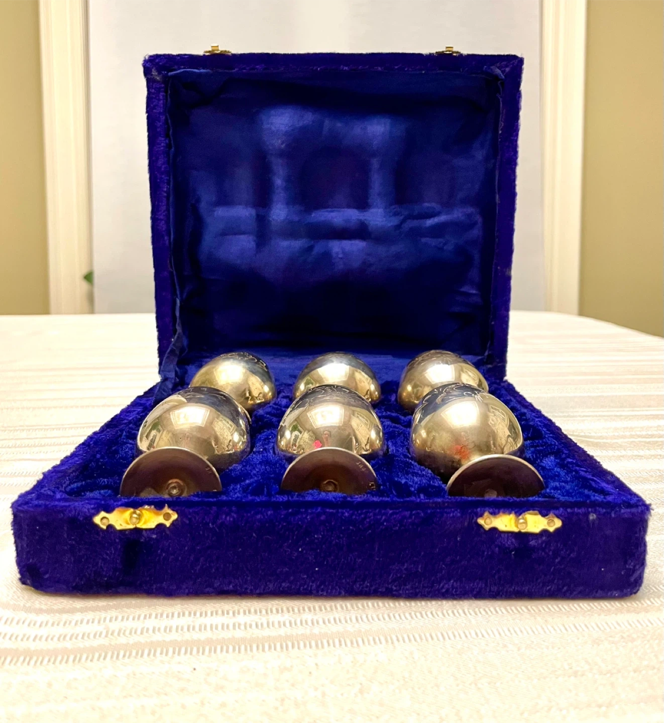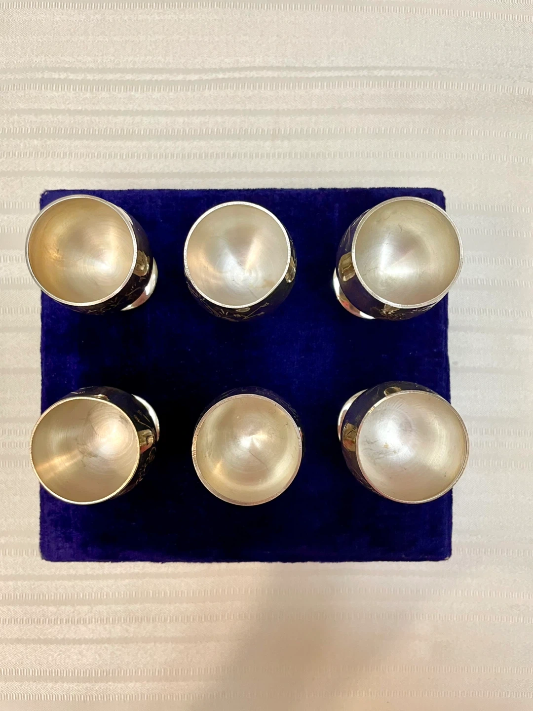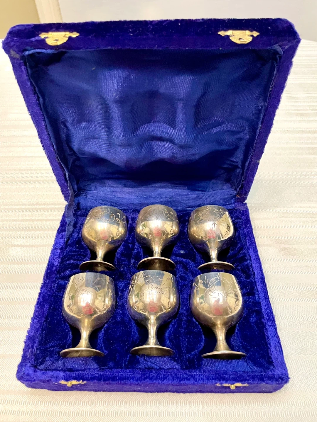 Stunning Set of 6 Silver plated Goblets in Royal Blue Velvet π