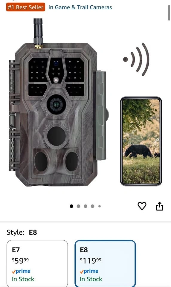 Brand new GardePro E8 Trail Camera. Opened the box to check contents; never used in the field. This is a high-spec camera with great night vision. Retails for $120 plus tax. Condition: New in box with manual and accessories. Top Features: 32MP photos, 1296P HD video, ultra-fast 0.1s trigger speed, and 100ft night vision range. Specs: Supports up to 256GB SD card (not included). Perfect for scouting, wildlife photography, or even home security.