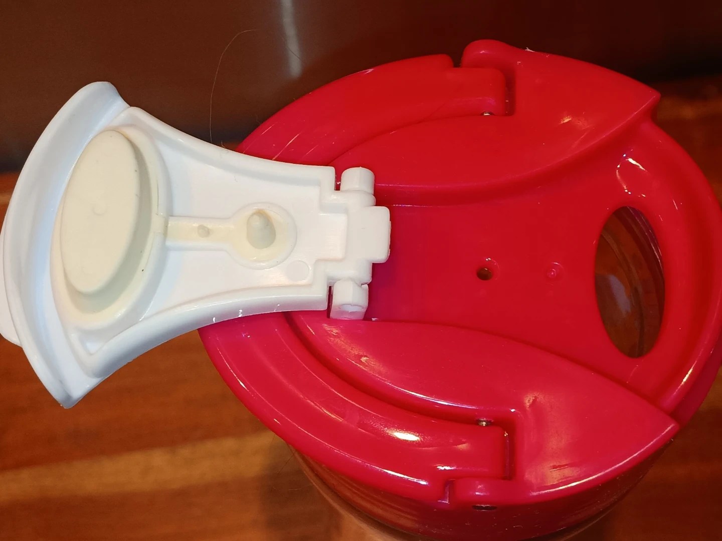 This is a reusable water bottle with a colorful floral design. It features a secure flip-top lid for easy drinking. The bottle is made of clear plastic.