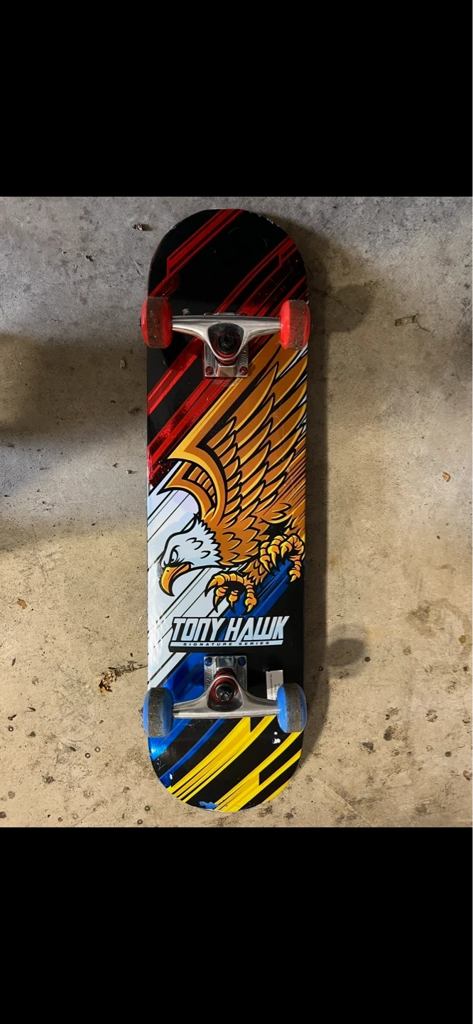 Buy & SellTony Hawk SkateboardTony Hawk Skateboard$30Tony Hawk skateboard with an eagle graphic. Deck measures approximately 31 inches long and 8 inches wide. Ready for your next skate session!ConditionLike newWHERE TO MEET458 Ridgebury RdView MapSELLERverifiedLeaSlate Hill872 reviews0 chats·0 favorites·4 viewsSEND CHAT TO SELLERHi Lea! I’m interested in your listing.Hi Lea! I’m interested in your listing.Get the Karrot app to chatSign In to chat