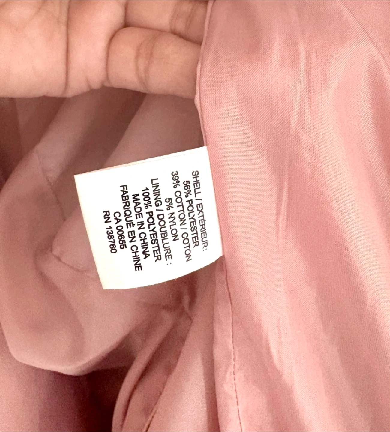 Shell is 56% polyester, 39% cotton, and 5% nylon.
