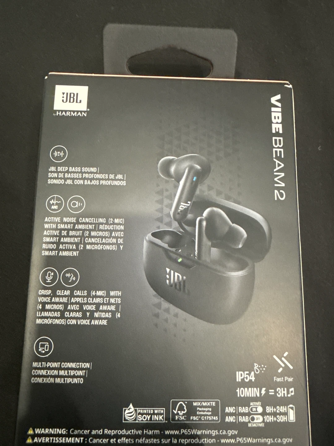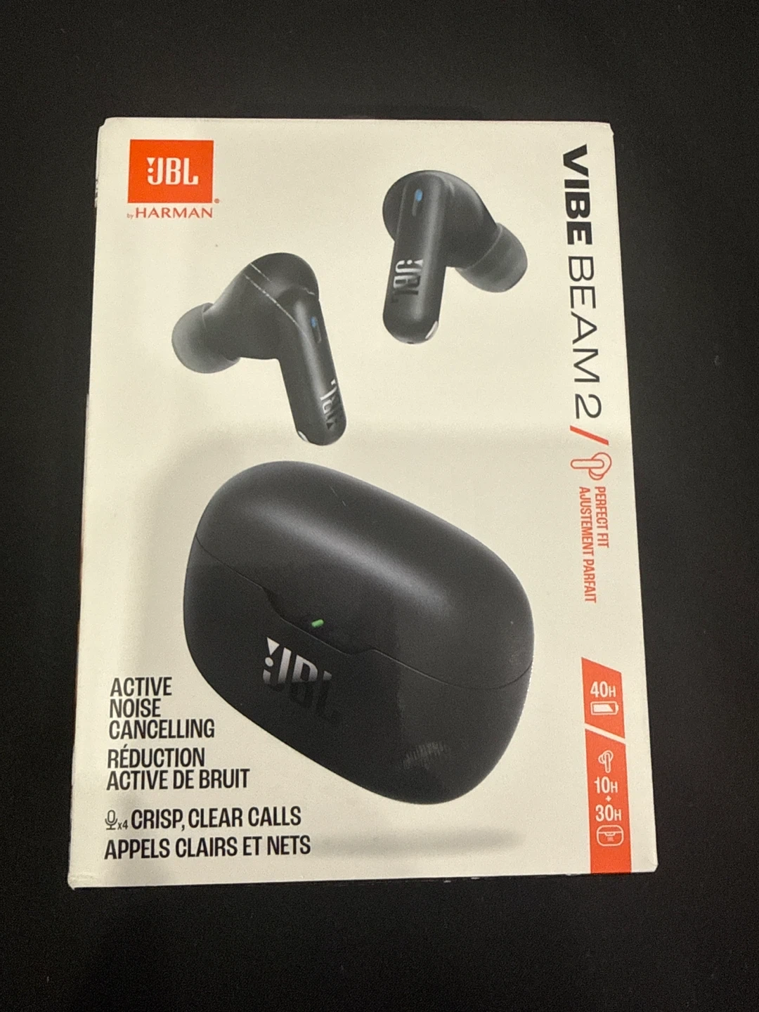JBL VIBE BEAM2 true wireless earbuds with ANC and deep bass sound. Features custom touch control and IPX5 water resistance. Includes USB Type-C charging. Enjoy up to 40 hours of playtime.