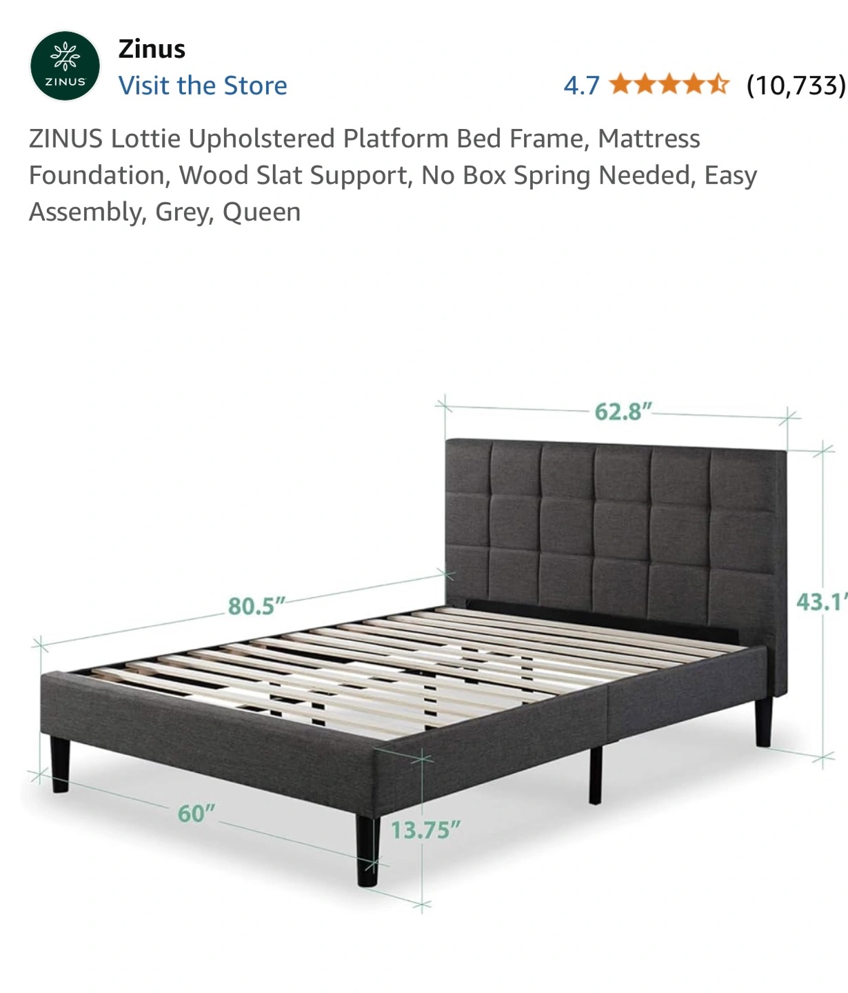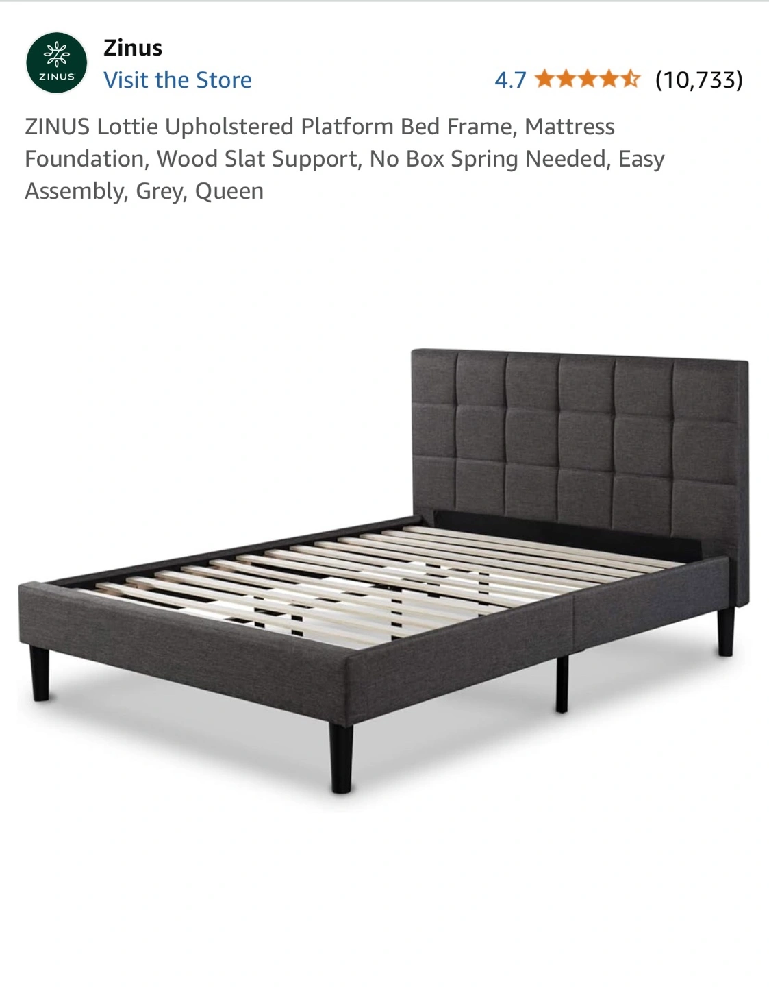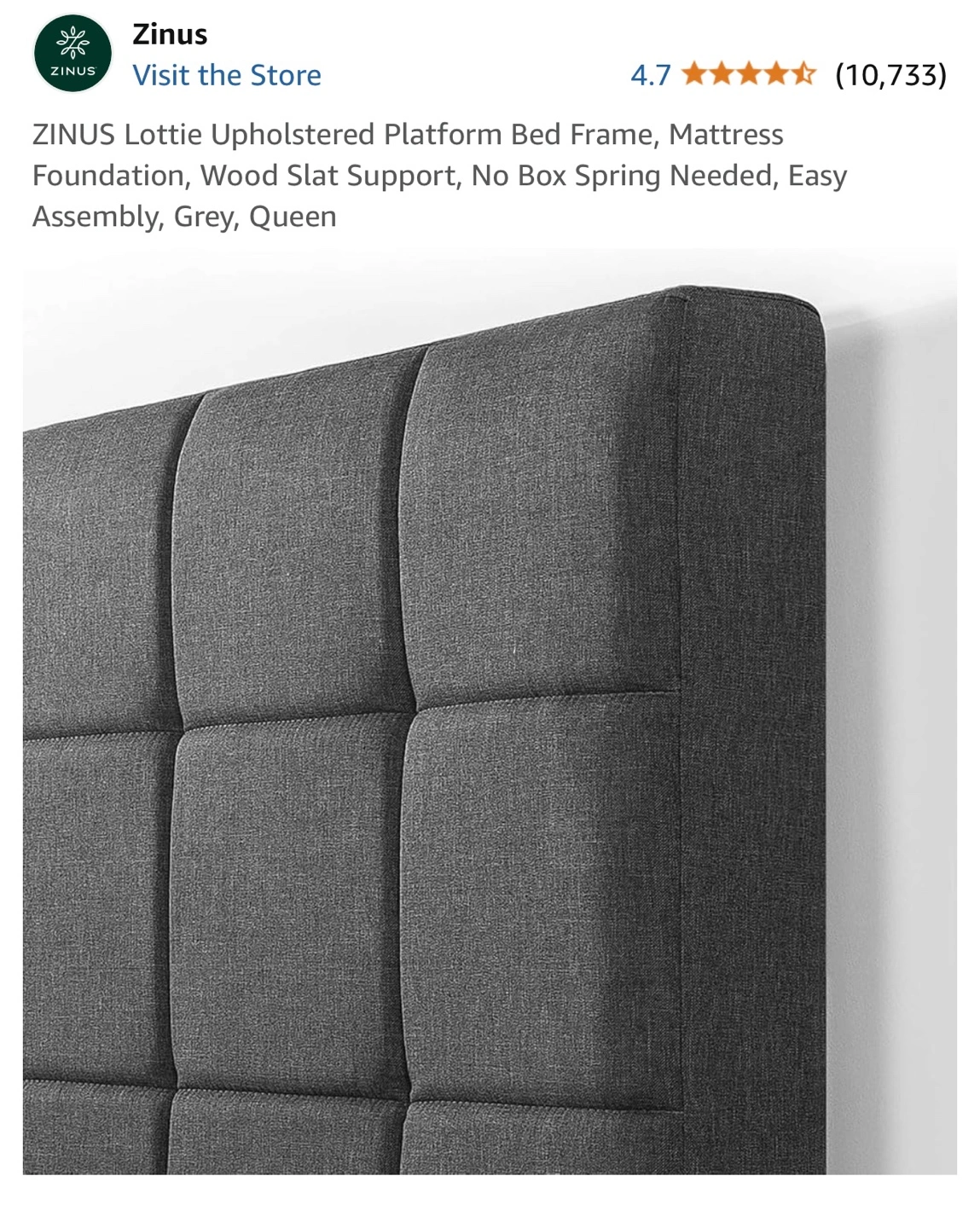 Zinus Lottie Upholstered Platform Bed Frame, Queen, Grey