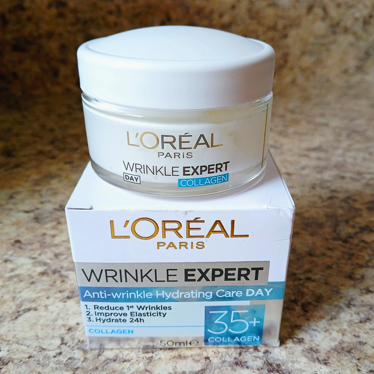 L'Oréal Paris Wrinkle Expert Anti-wrinkle Hydrating Care for DAY. This cream is formulated for ages 35+. It helps reduce first wrinkles, improve elasticity, and hydrate for 24 hours. 50ml.
