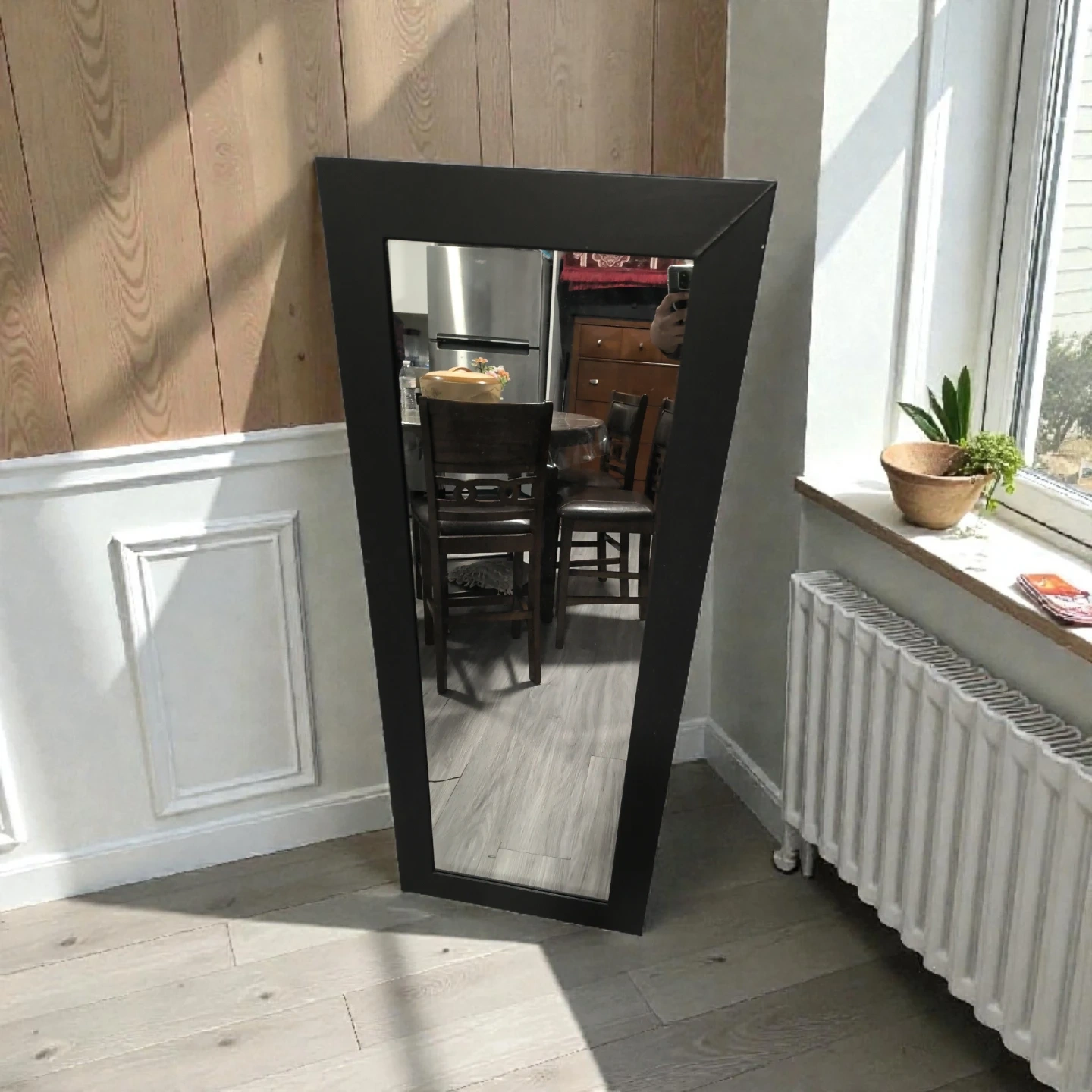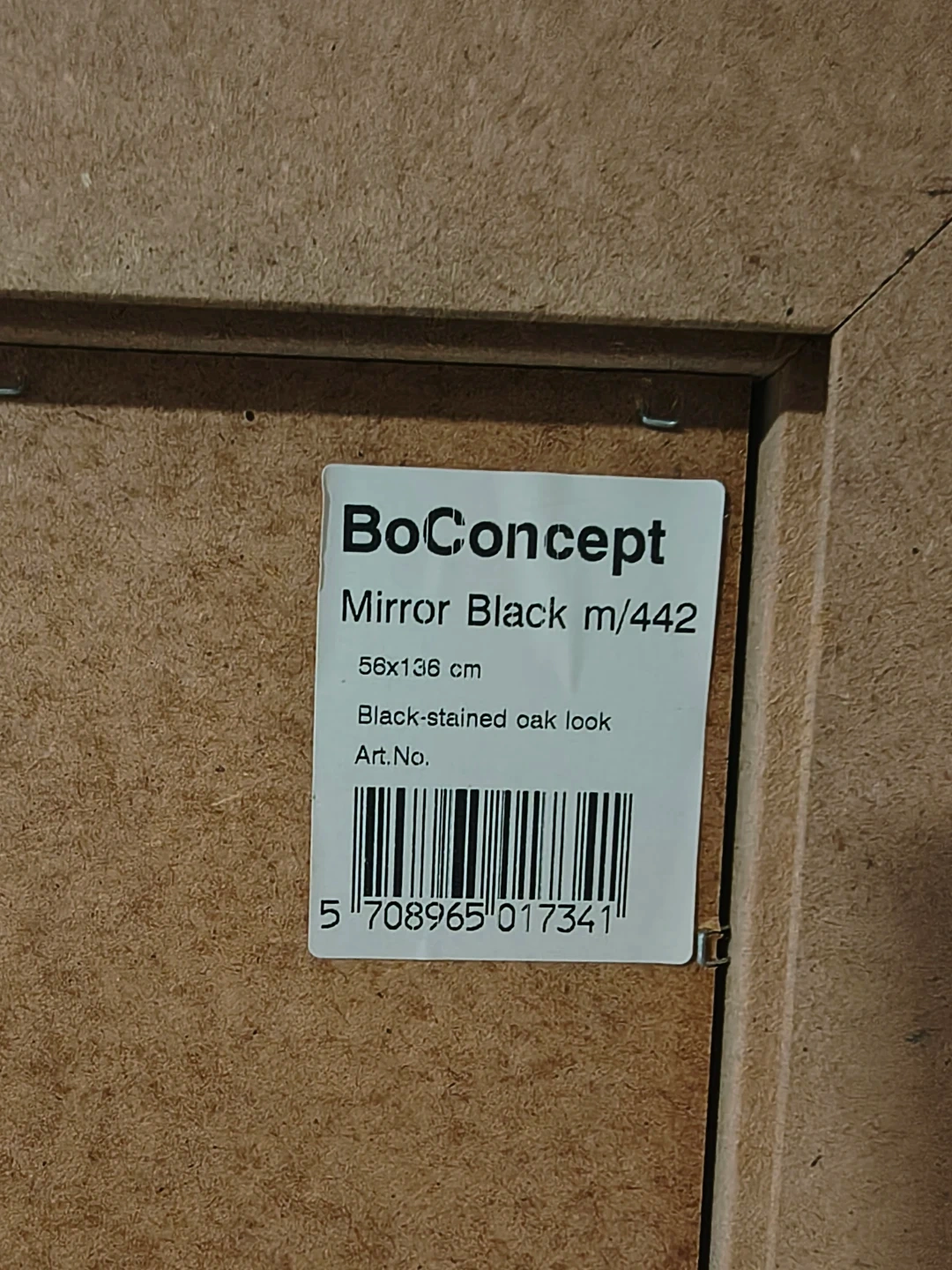 Selling a BoConcept Mirror in Black, model m/442. It measures 56x136 cm and has a black-stained oak look. Great for adding a touch of modern design to your space