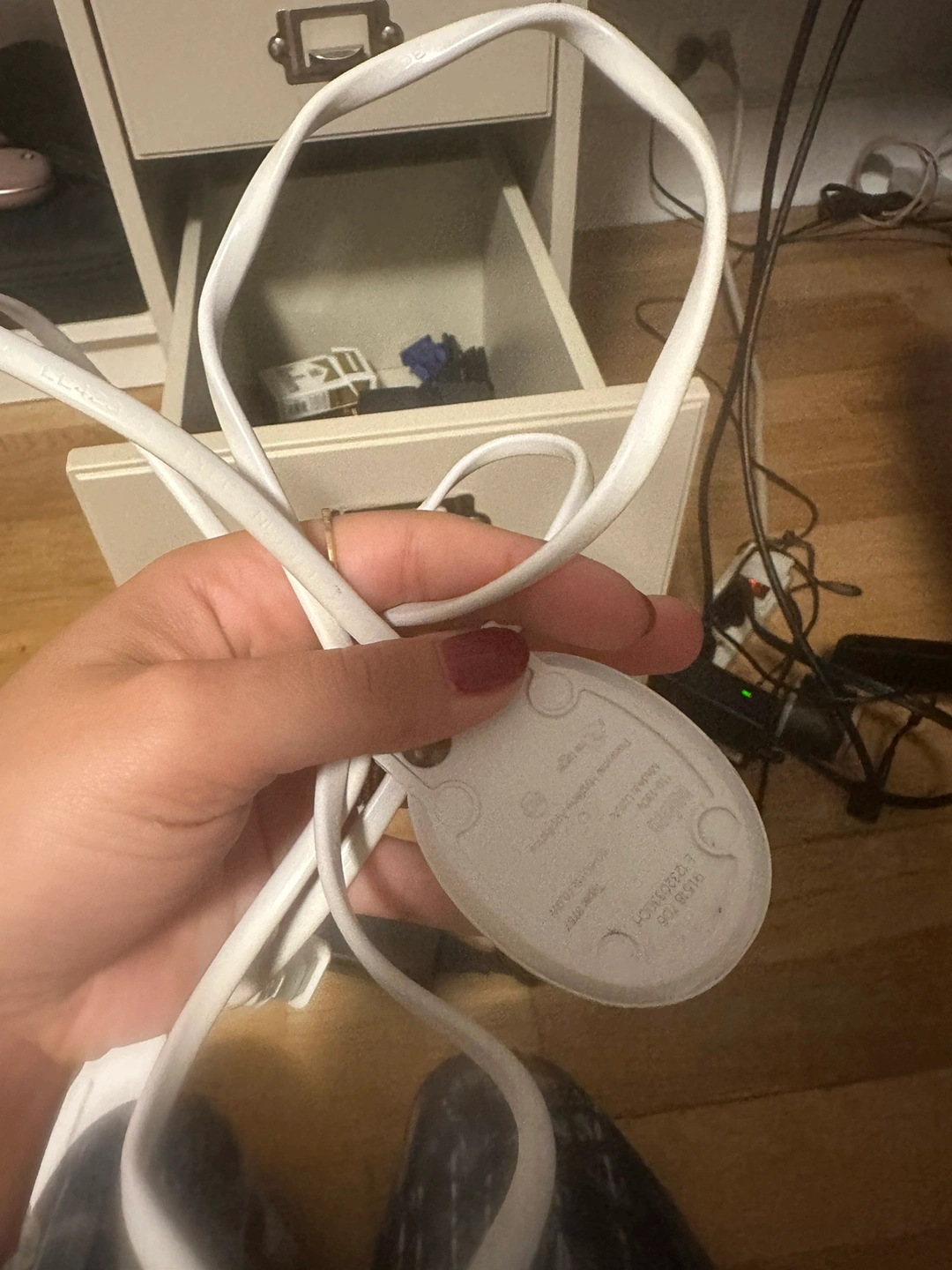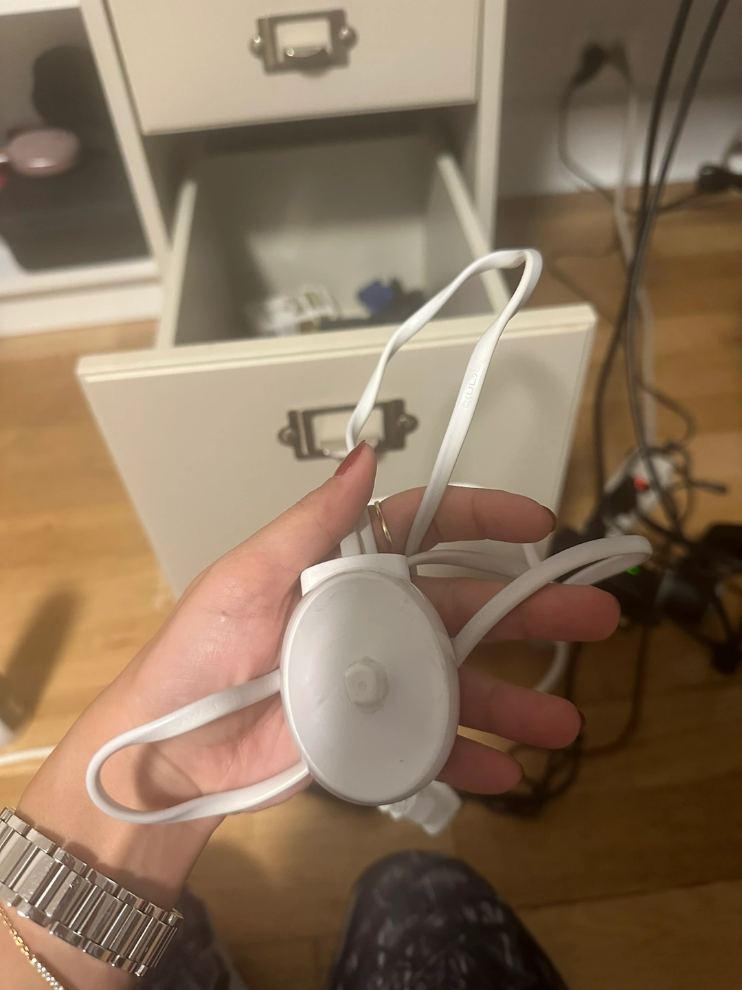 This is the charger for a Braun Oral-B electric toothbrush. It is white. It includes a cord with a standard plug.