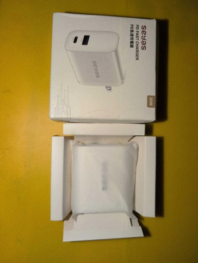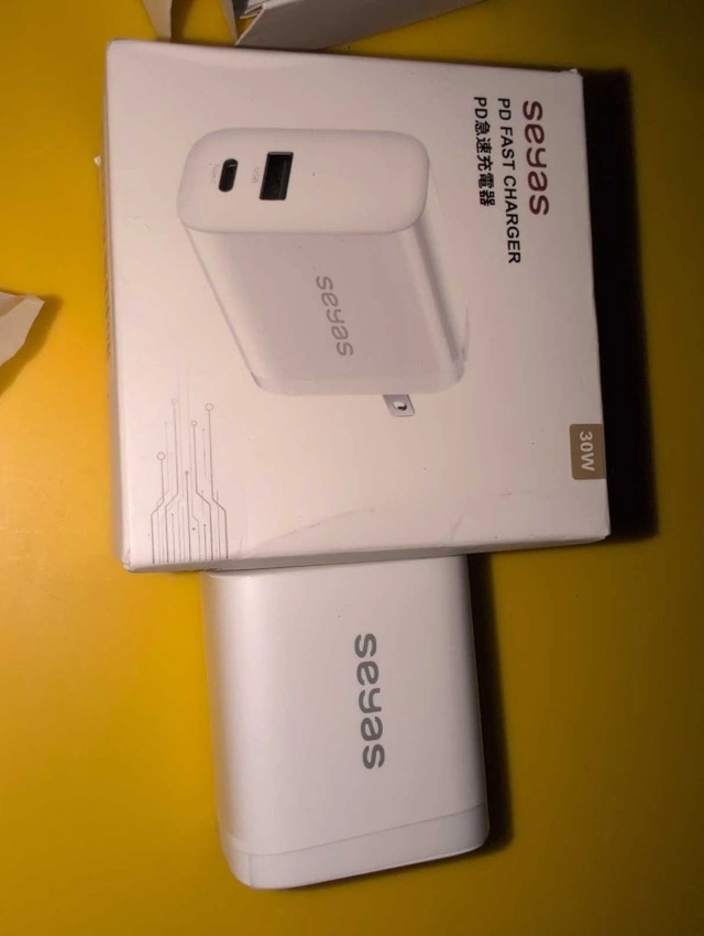 I'm selling a brand new Seyas 30W PD fast charger, perfect for quickly powering up your devices with its USB and Type-C ports. This charger is still in its original packaging, never been plugged in, and ready to go! Specifications: Brand: Seyas Power: 30W Ports: USB and Type-C Condition: New. Cash accepted.