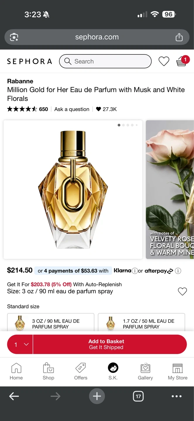 This is Rabanne Million Gold for Her Eau de Parfum. It's a 90 ml bottle. Alcohol of vegetal origin 79% vol.