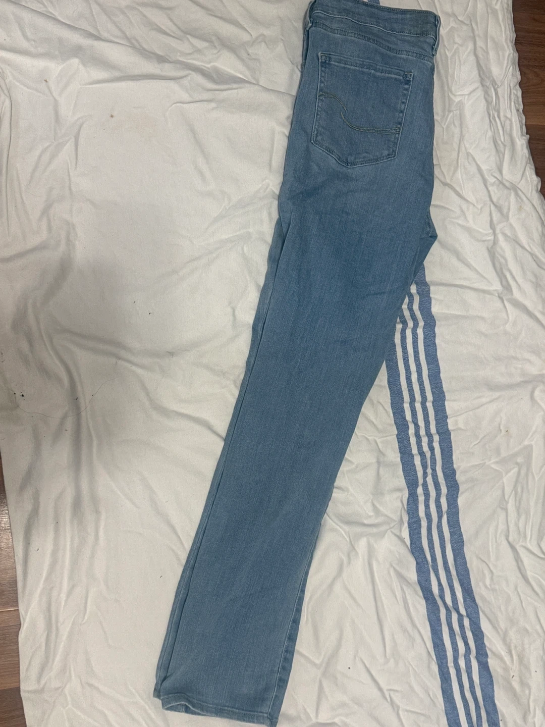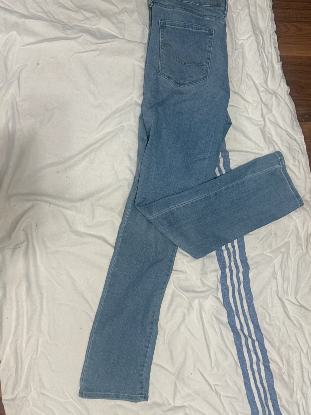 Classic light wash Levi's 514 jeans. These are a straight fit, offering a comfortable and timeless look. They're made from durable denim. Great for everyday wear!