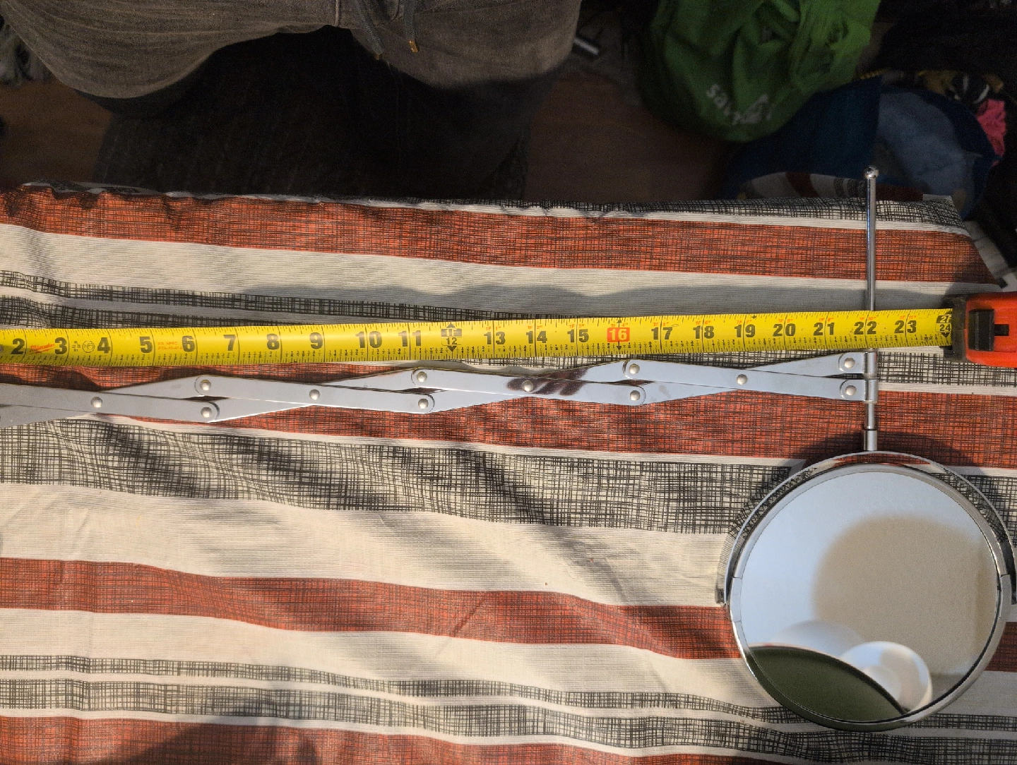 Selling a chrome extendable wall mount makeup mirror! It's in great condition and has a nice, clean look. The mirror extends to about 22 inches, making it super convenient for getting ready. Perfect for the bathroom or vanity area!It is double-sided, one side is normal, the other side brings closer.