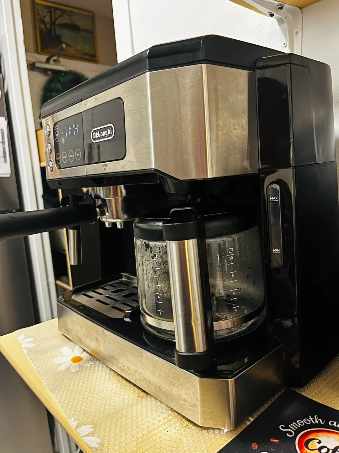 Selling a De’Longhi 2-in-1 Coffee Maker: Espresso + drip in one machine. Includes automatic timer so you can set the drip brew the night before and wake up to fresh coffee. Built-in frother for lattes and cappuccinos. Excellent condition and easy to use! Comes with all the accessories shown in the pictures.