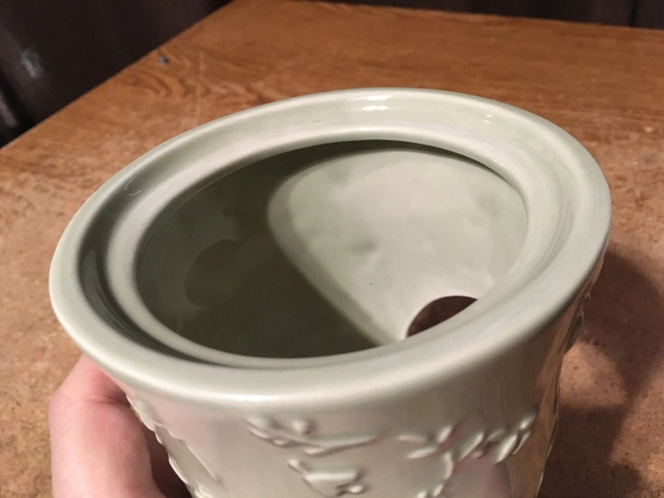greenish candle holder from Hallmark with a flower designs on it very good condition pick up at house