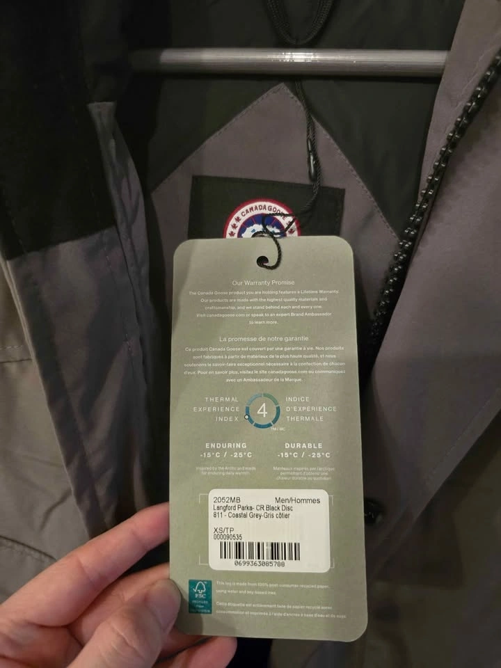 Langford Parka (Black Label - Men's). Color: Coastal Grey (Sophisticated Grey). Size: Men's XS (Perfect for smaller frames). Price: $700CAD (Etransfer or cash). Pickup Location: Richmond Capstan SkyTrain Station.
