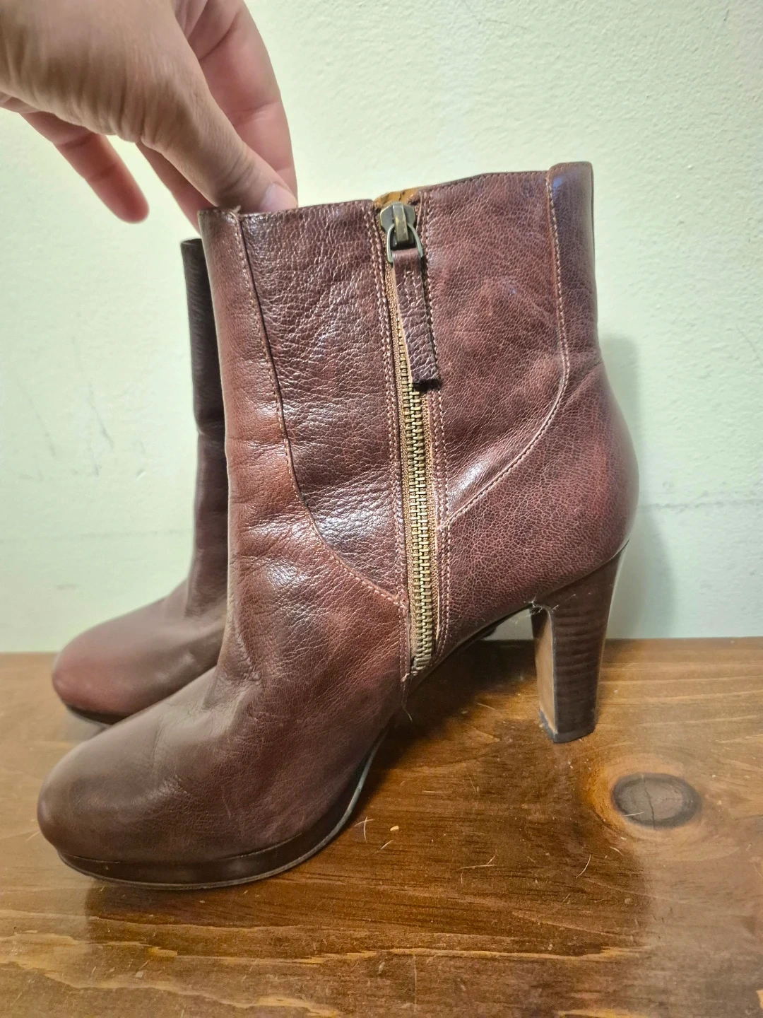 Nine West Brown Leather Ankle Boots - Size 8.5