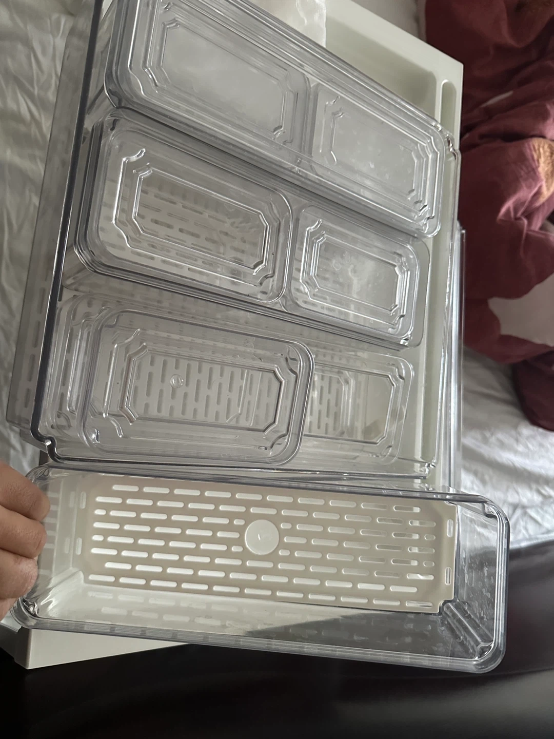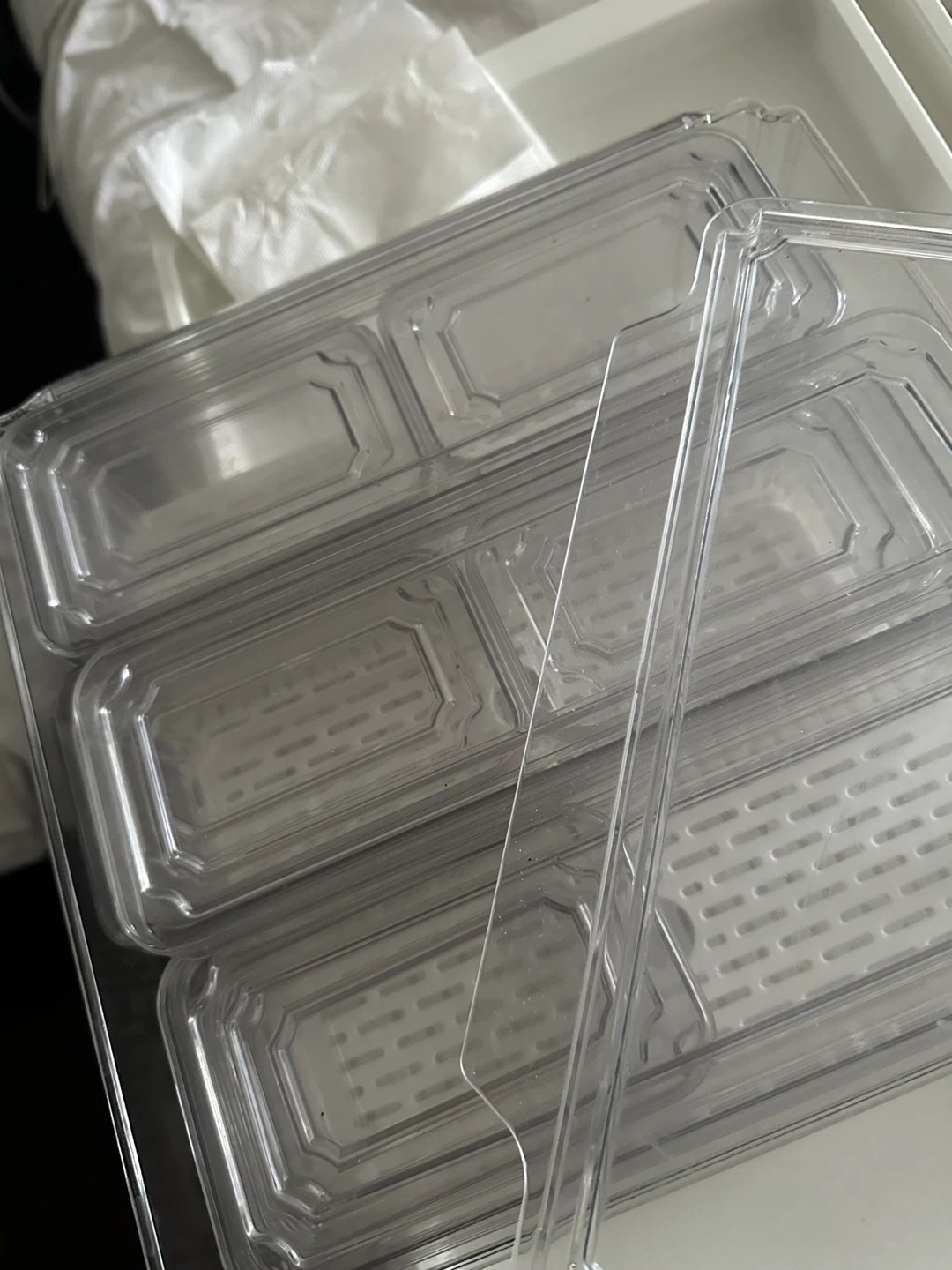 Selling a set of clear plastic storage bins! They're perfect for organizing your pantry, fridge, or any space that needs a little tidying up. They're in great condition and ready for a new home.