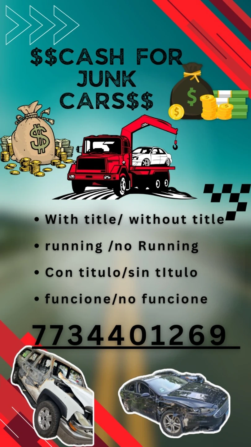 Buy & SellCash for Junk Cars - Running or Not!Cash for Junk Cars - Running or Not!$564We buy junk cars, running or not! With or without title. Serving Chicago and suburbs. Get cash for your old vehicle today! Compramos carros Junk WHERE TO MEET2800 S Pulaski RdView MapSELLERverifiedalexLittle Village750 reviews2 chats·0 favorites·23 viewsSEND CHAT TO SELLERHi alex! I’m interested in your listing.Hi alex! I’m interested in your listing.Get the Karrot app to chatSign In to chat
