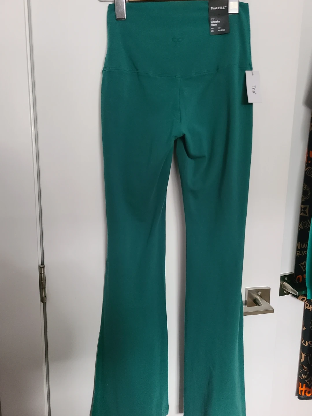 These Tna Chill Cheeky Flare pants are a vibrant teal colour and a hi-rise fit. They're designed in a comfortable flare style. Size XS.