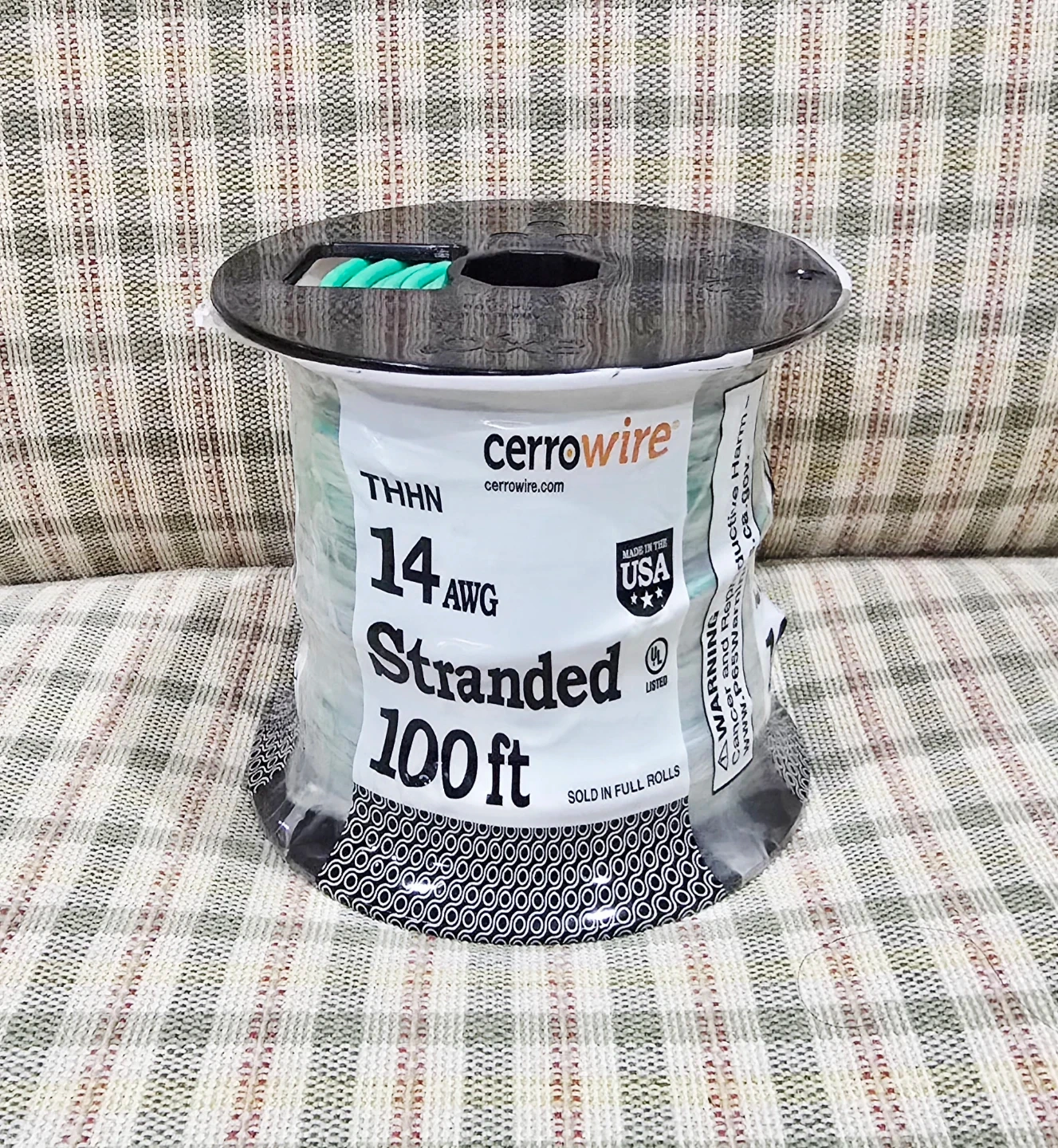 Cerrowire 14 AWG Stranded THHN Wire [100 ft Green] - NEW!