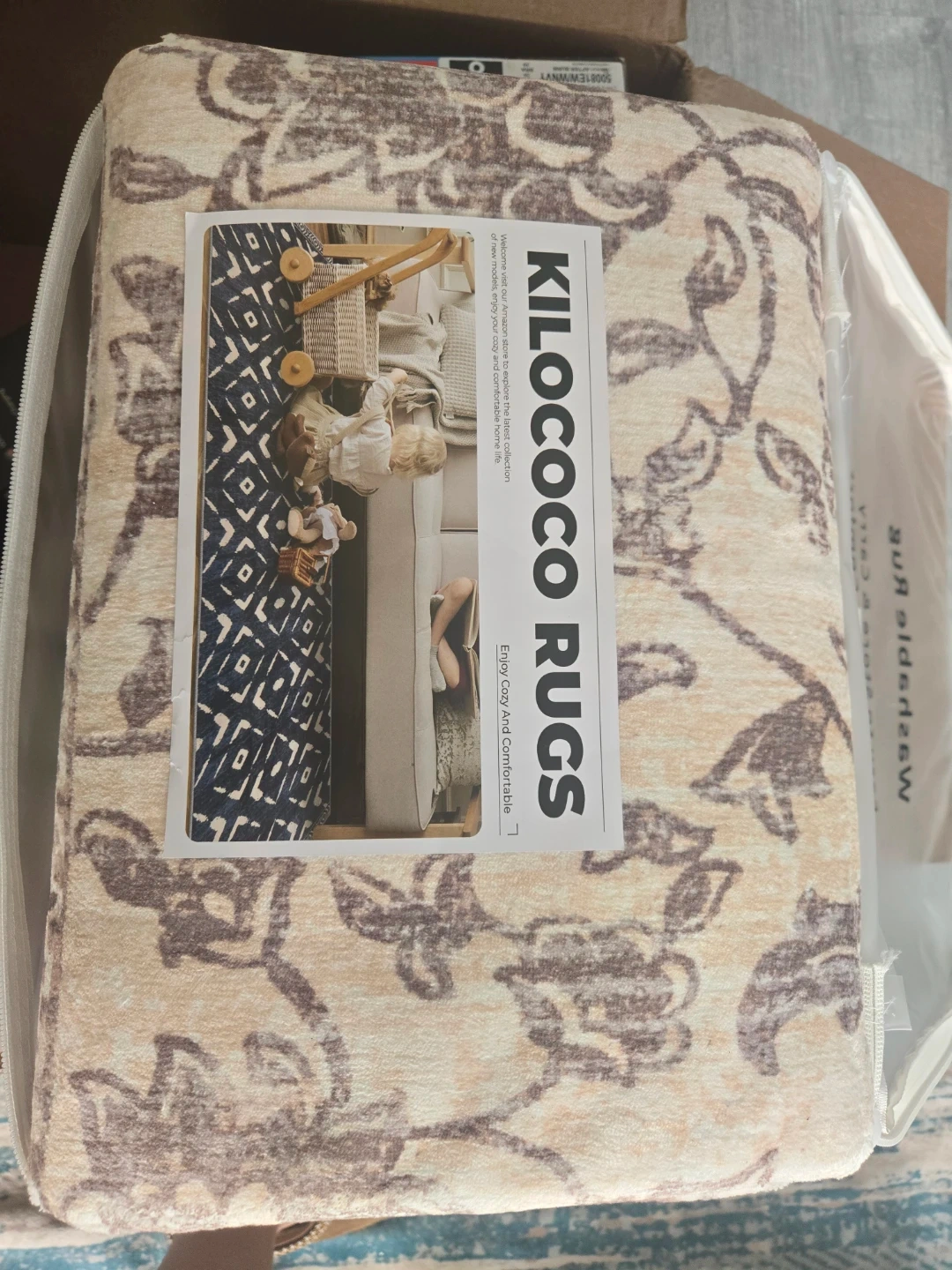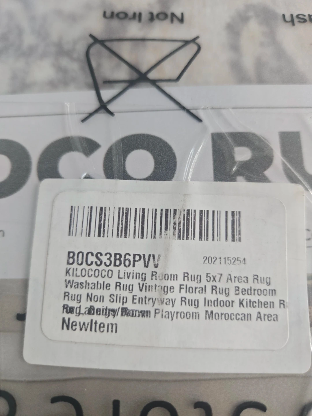 KILOCOCO Living Room Rug, 5x7 area rug. Washable vintage floral design. Non-slip indoor rug. It's suitable for bedrooms, kitchens, or playrooms. New item!