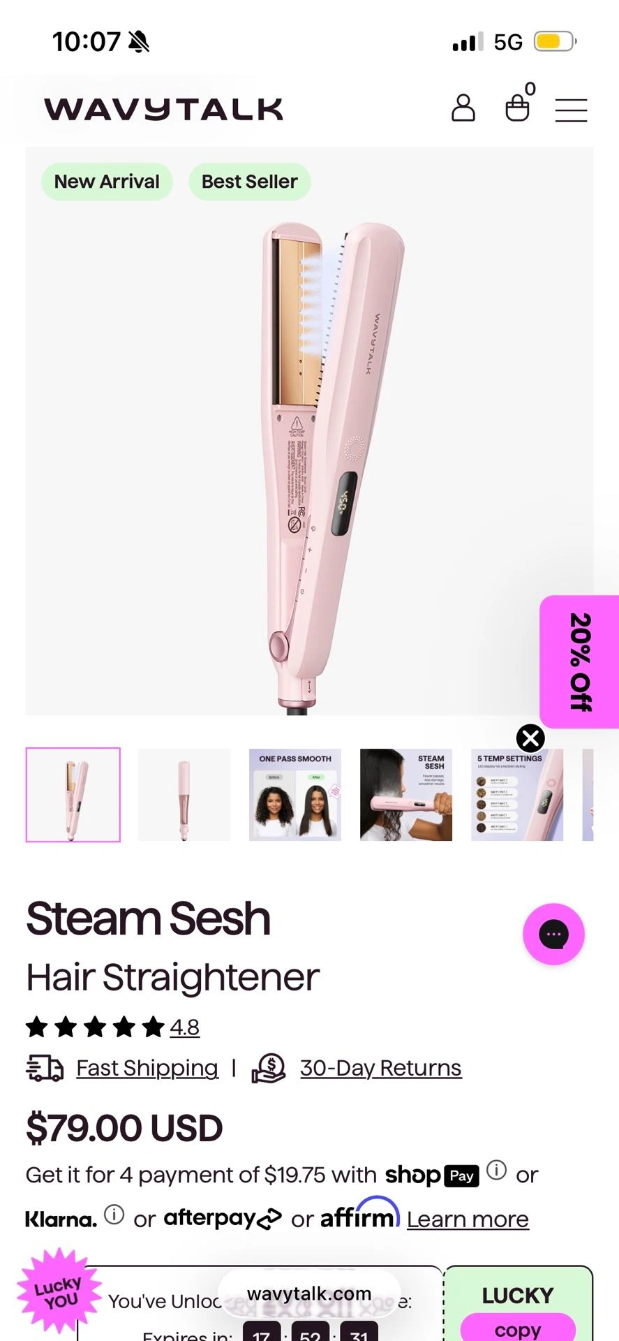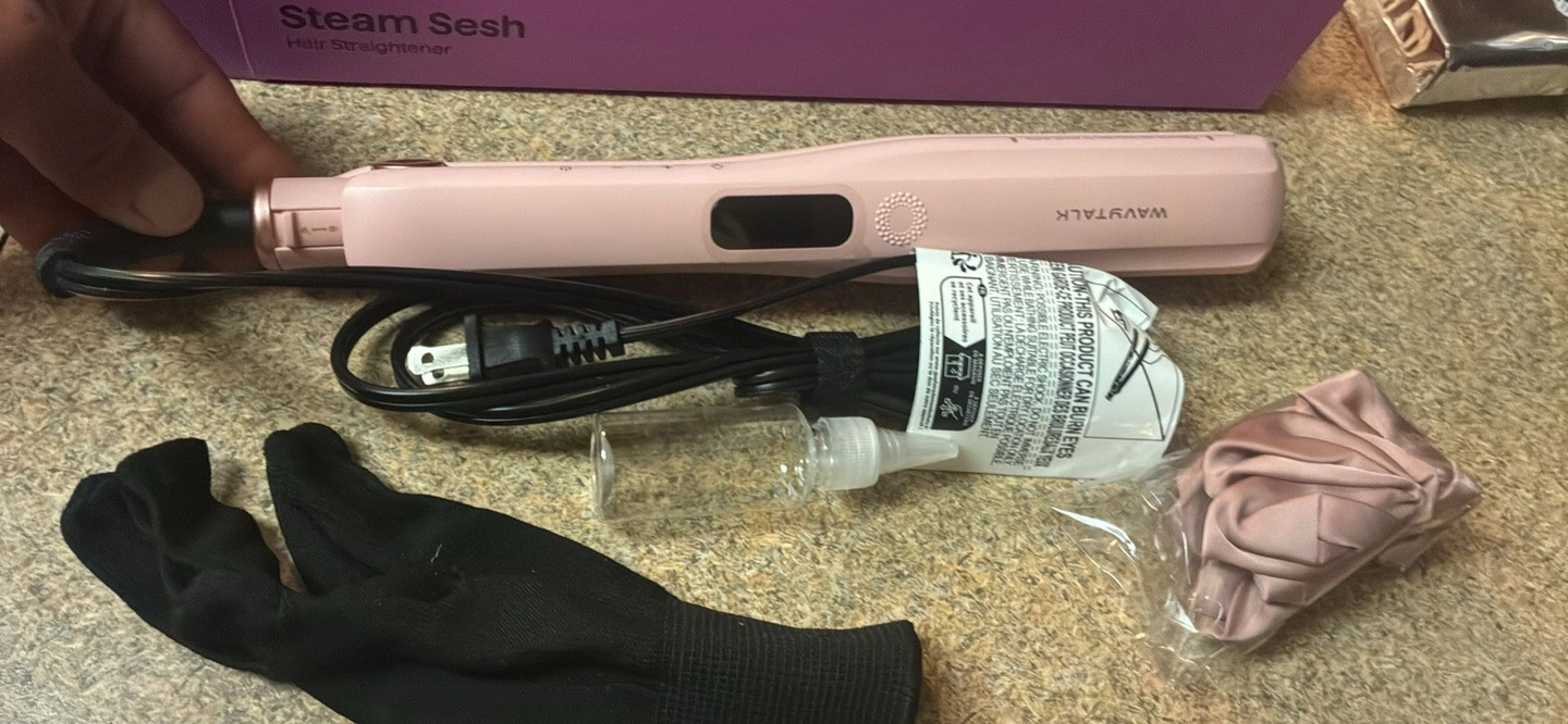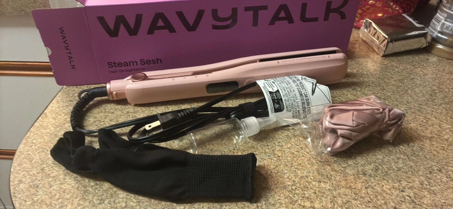Wavytalk Steam Hair Straightener, Steam Sesh. Steam reduces damage, nourishes hair & expedites straightening. 1.38'' Nano Titanium Flat Iron with detachable comb for silk press smoothing. Sakura Pink.