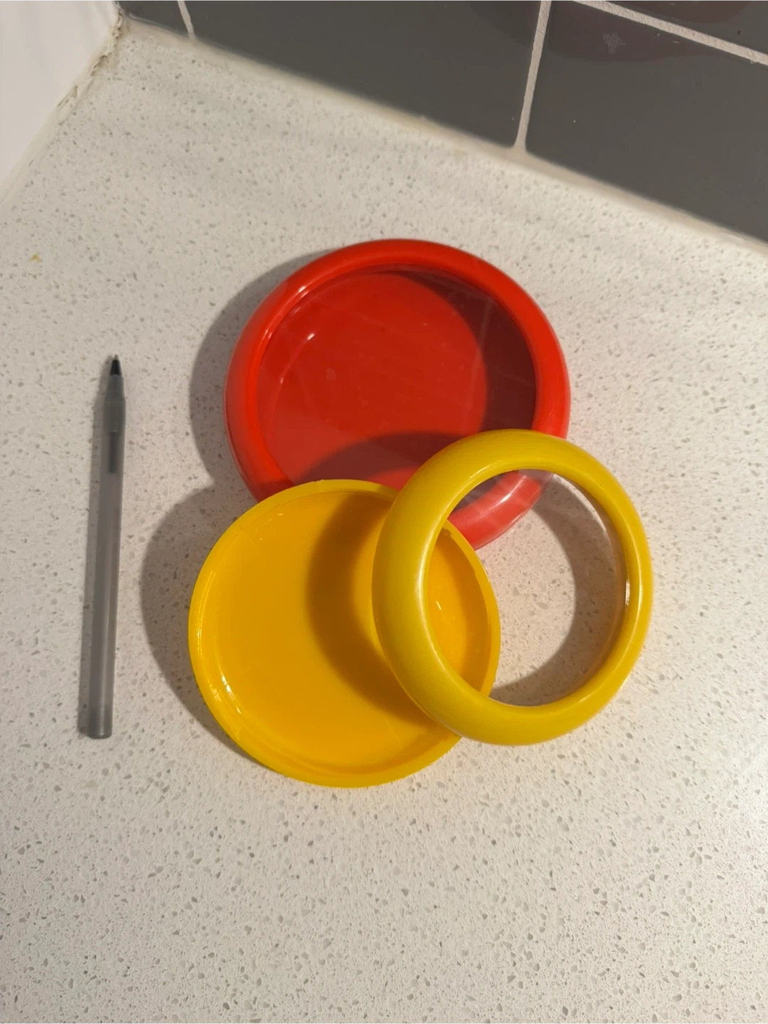 Designed to keep cut produce like lemons, tomatoes, or onions fresh by reducing oxidation. Features a stretchy silicone film in the lid that compresses over the food to create an airtight seal. Pen for scale