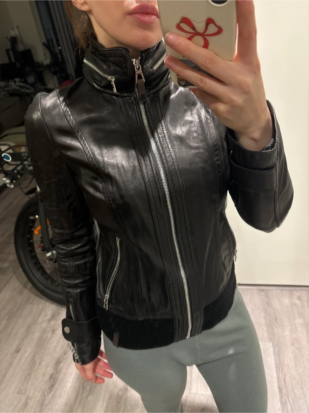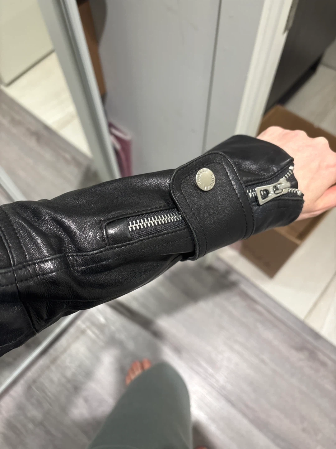 Selling a Rudsak black leather jacket. It's in great condition and ready for a new owner! The jacket features a stylish design with zipper details and a comfortable fit. Perfect for adding a touch of edgy sophistication to any outfit