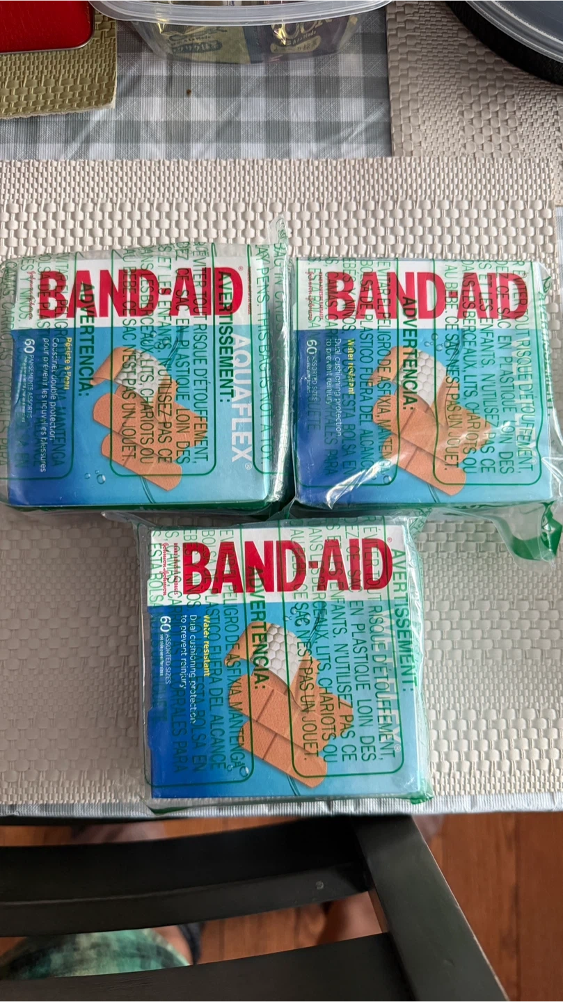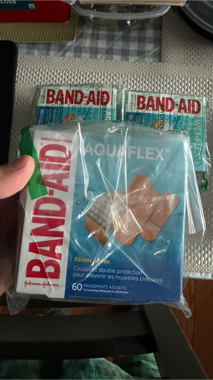 These 3 boxes of BAND-AID AQUAFLEX bandages offer waterproof protection and double cushioning. They're designed to resist water, making them great for active use. Includes assorted sizes: 10 (2.5 cm x 7.6 cm), 20 (1.9 cm x 7.6 cm), and 30 (1.6 cm x 5.7 cm).