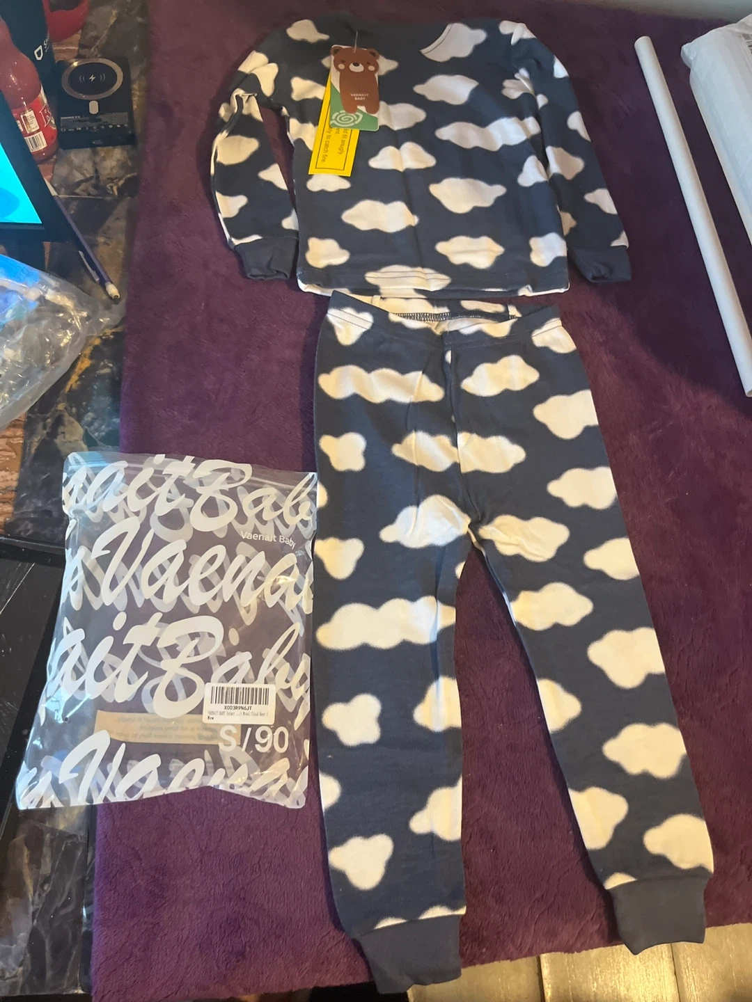 Cute Vaenait Baby pajama set with a cloud pattern! Size S/90. Perfect for a comfy night's sleep for your little one