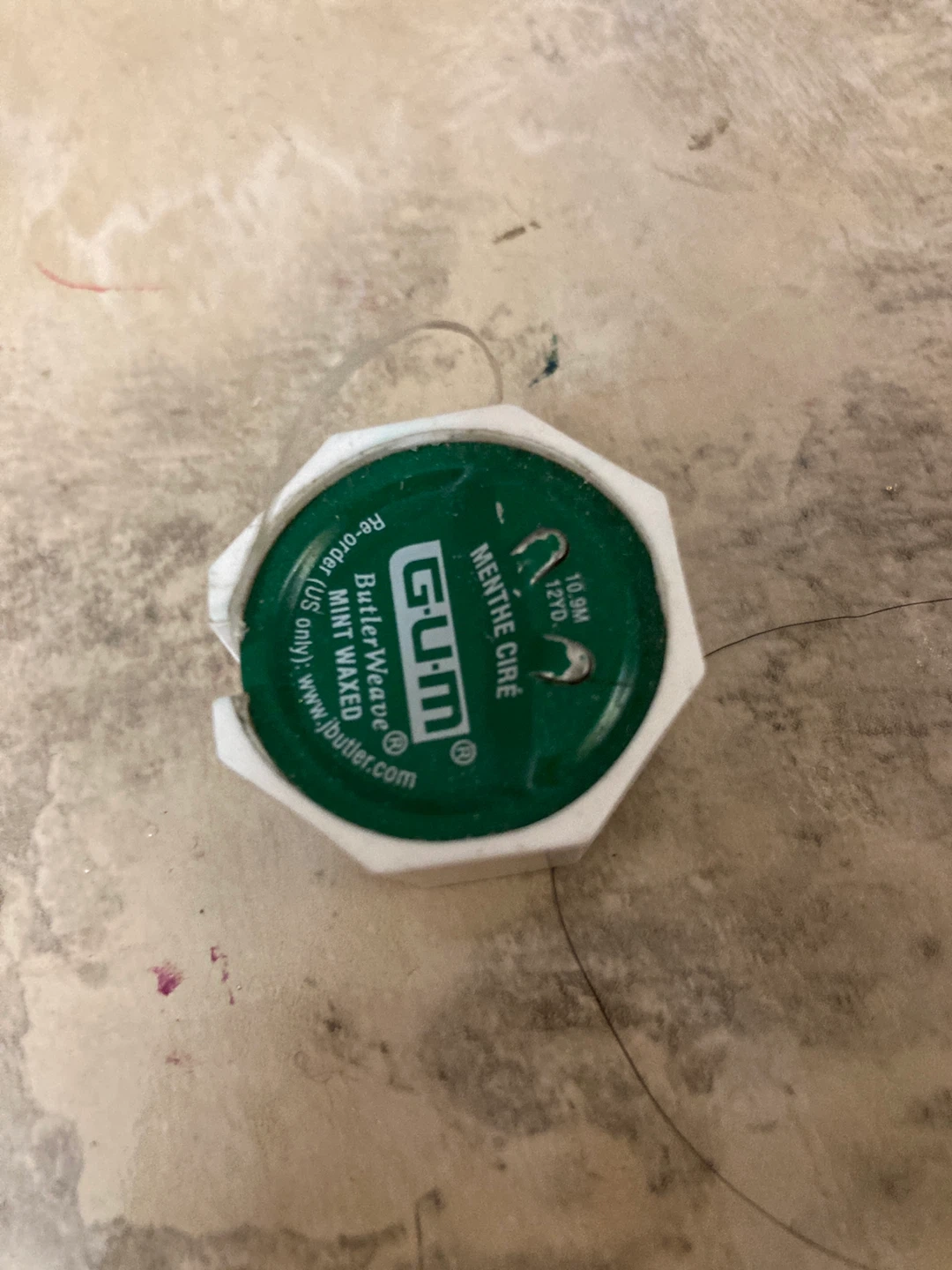 This is a GUM ButlerWeave mint waxed dental floss. It measures 10.9 meters long. It's mint flavoured for a fresh feeling.