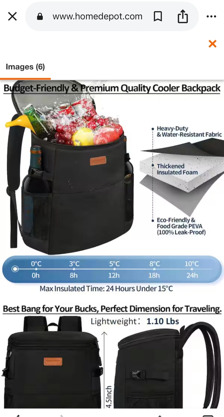 This is a Vankor cooler backpack in black! It has a 18 qt capacity, perfect for camping or picnics. It's 100% leak-proof and made with durable cooler bag material. The fabric is heavy-duty and water-resistant with thickened insulated foam. It's lightweight at 1.10 lbs Please see photos for details Pick up available in Bayterrace mall