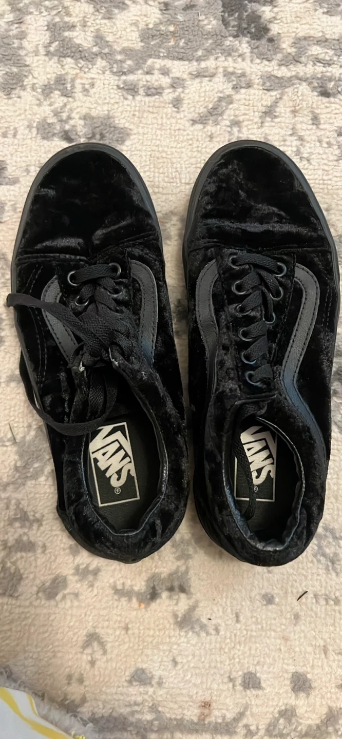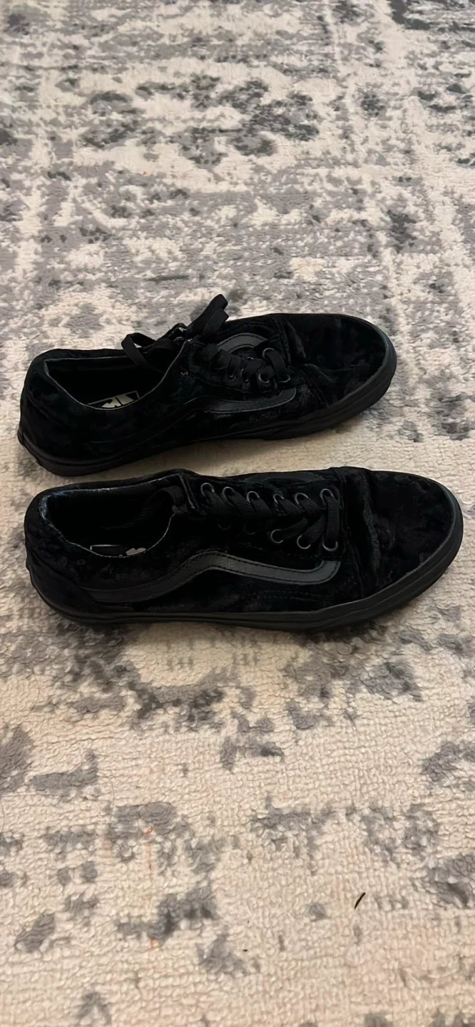 5Selling a pair of Vans Old Skool sneakers in black velvet! They are a women's size 7.5 US. They are in used condition.