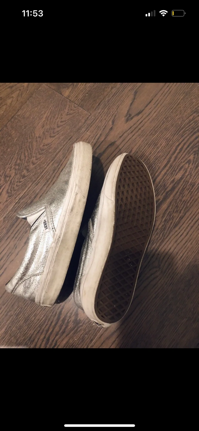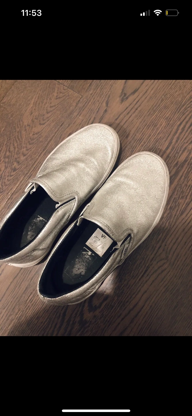 VANS Off The Wall Sliver Metallic Textured Classic Slip-On Shoes Women 7.5 Men 6. Condition is "Pre-owned" but in good condition