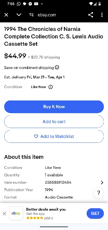 The Chronicles of Narnia audio book casettes🧡