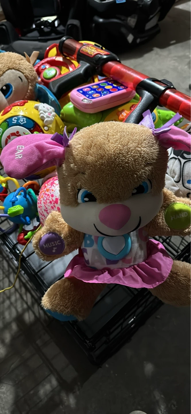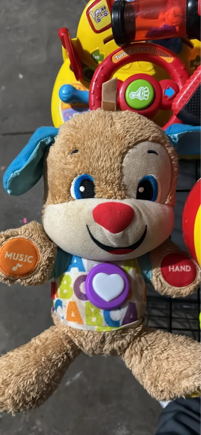 Fisher-Price Laugh & Learn Smart Stages Puppy. This interactive plush dog teaches ABCs, colors, and more. It has multiple modes for learning and play. Includes music and hand buttons for engagement.
