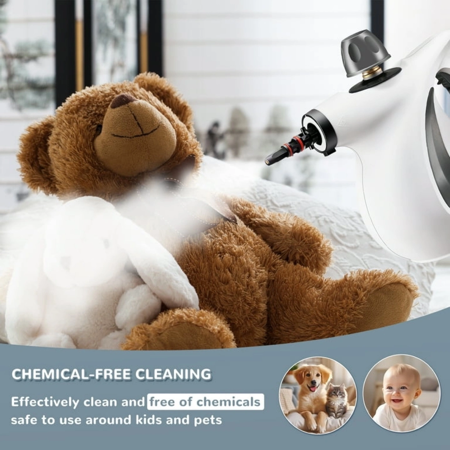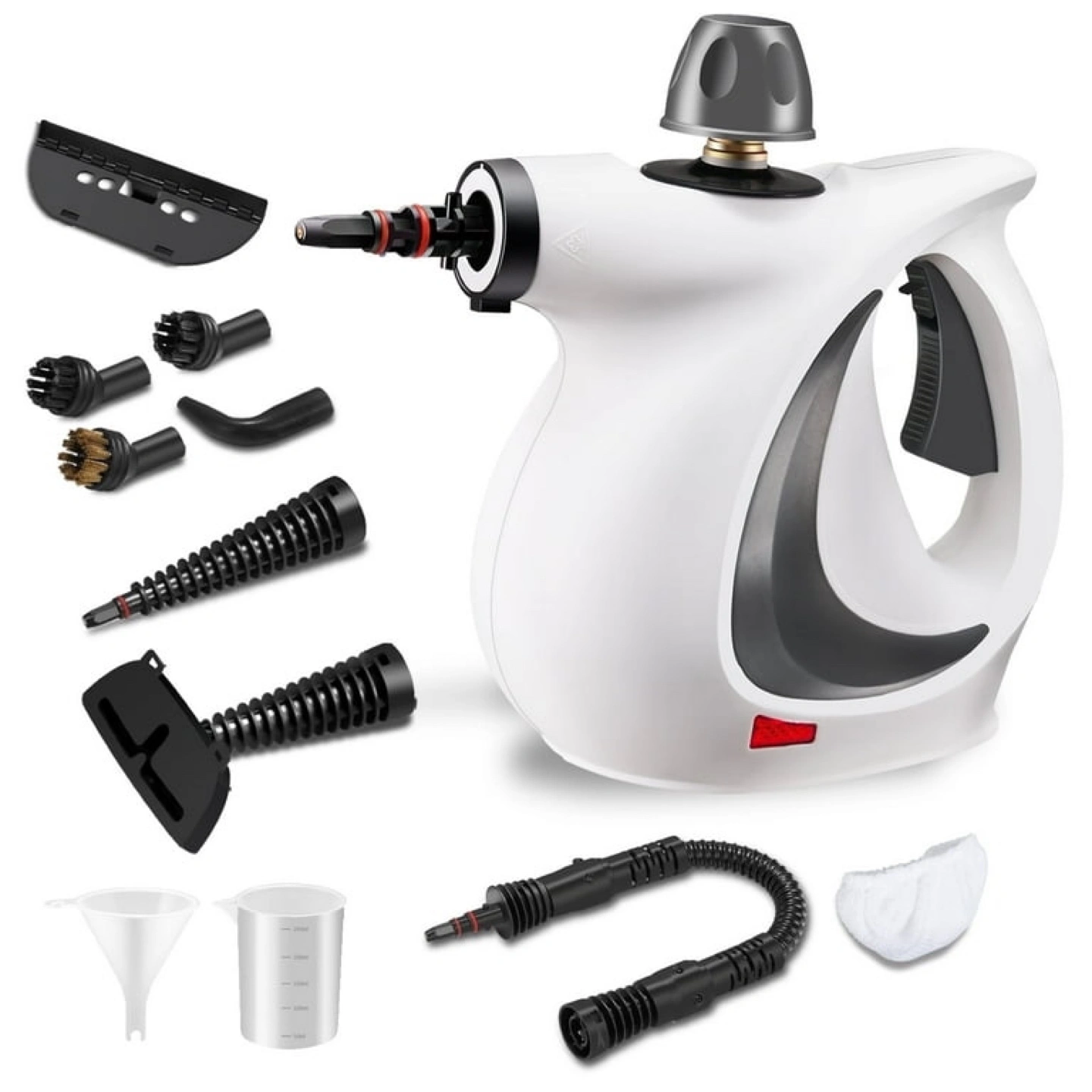 Powerful handheld steam cleaner. Includes multiple attachments for various cleaning tasks. Large water tank. Easy storage. Chemical-free cleaning.
