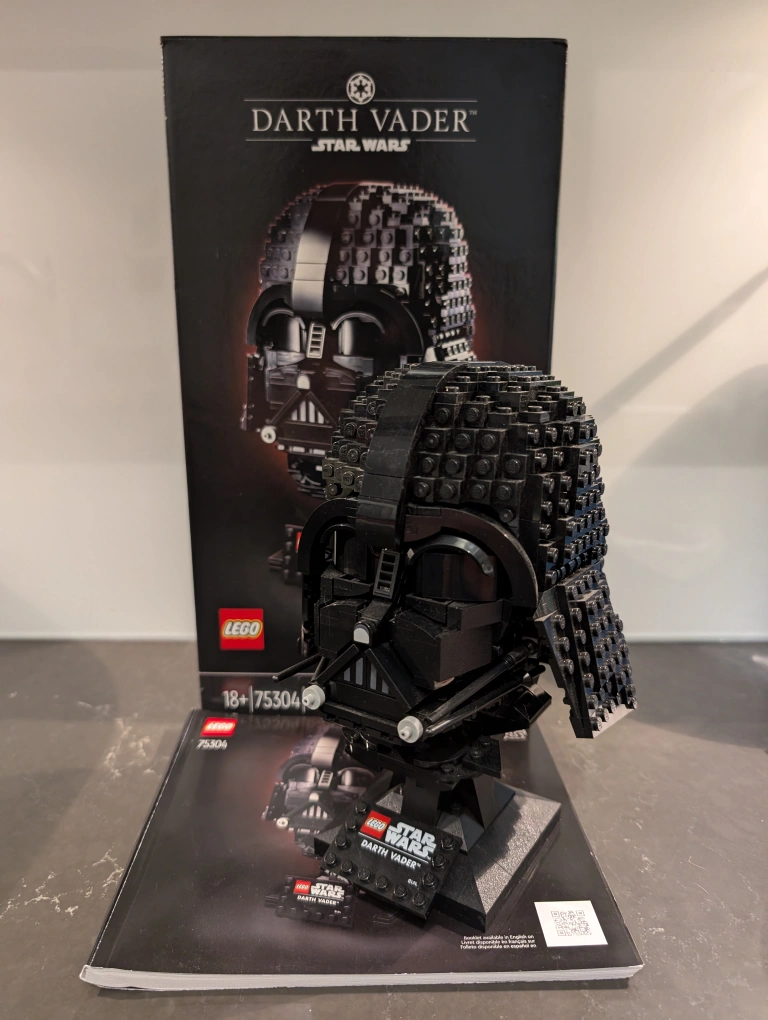 Darth Vader Lego set. Includes box, instructions, and extra pieces.