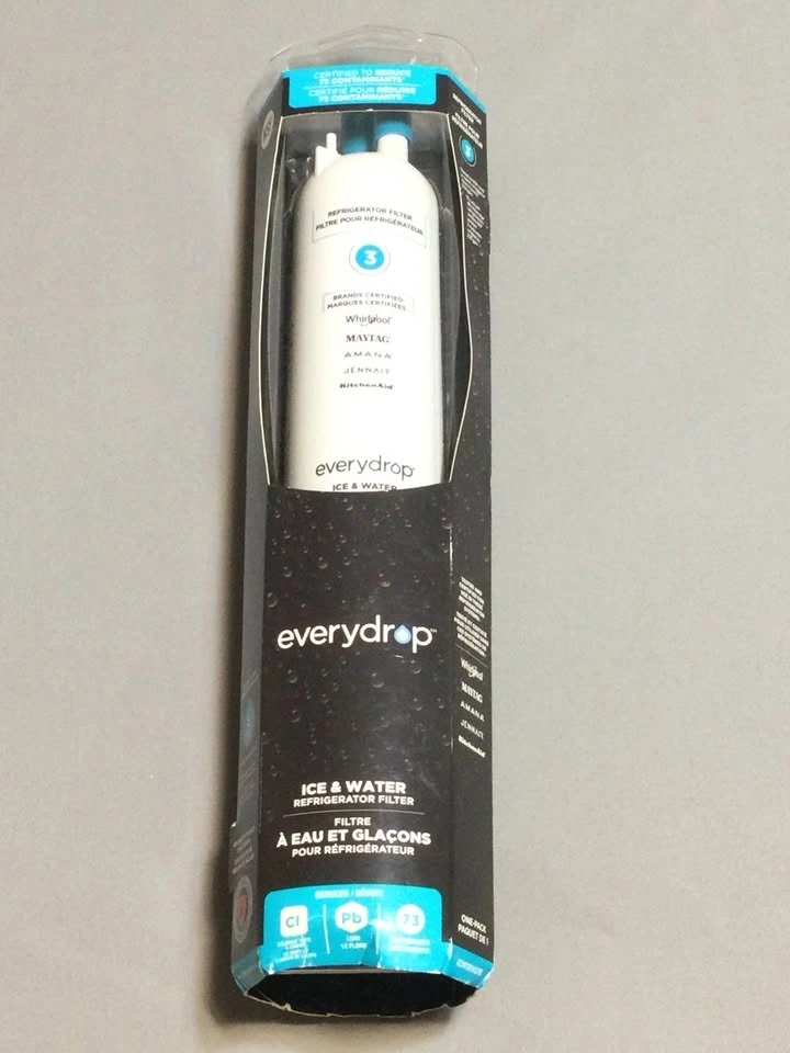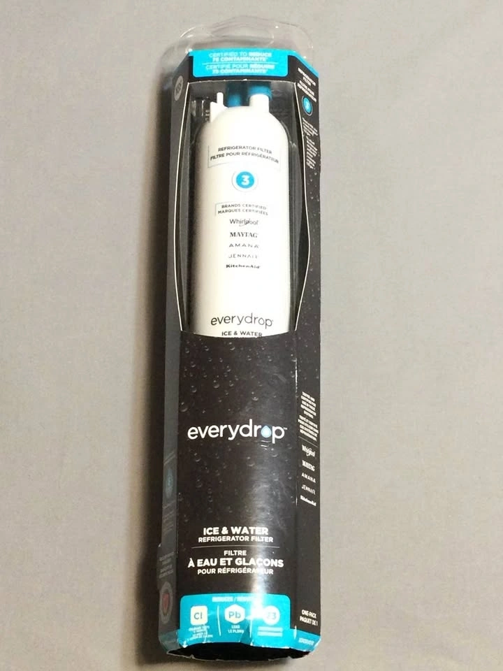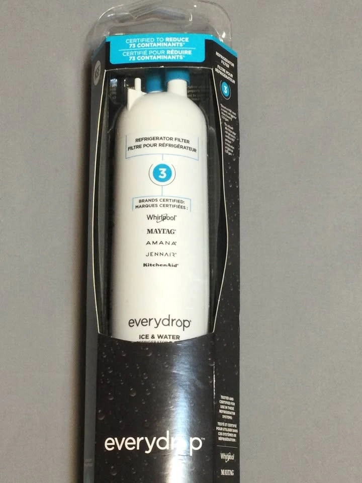 New everydrop Filter 3 ice and water refrigerator filter, still sealed in package. Works with Whirlpool, Maytag, Amana, JennAir, and KitchenAid fridges. Certified to reduce 73 contaminants for fresh, clean water. Cash only, public meetup in Manhattan / Hell's Kitchen.