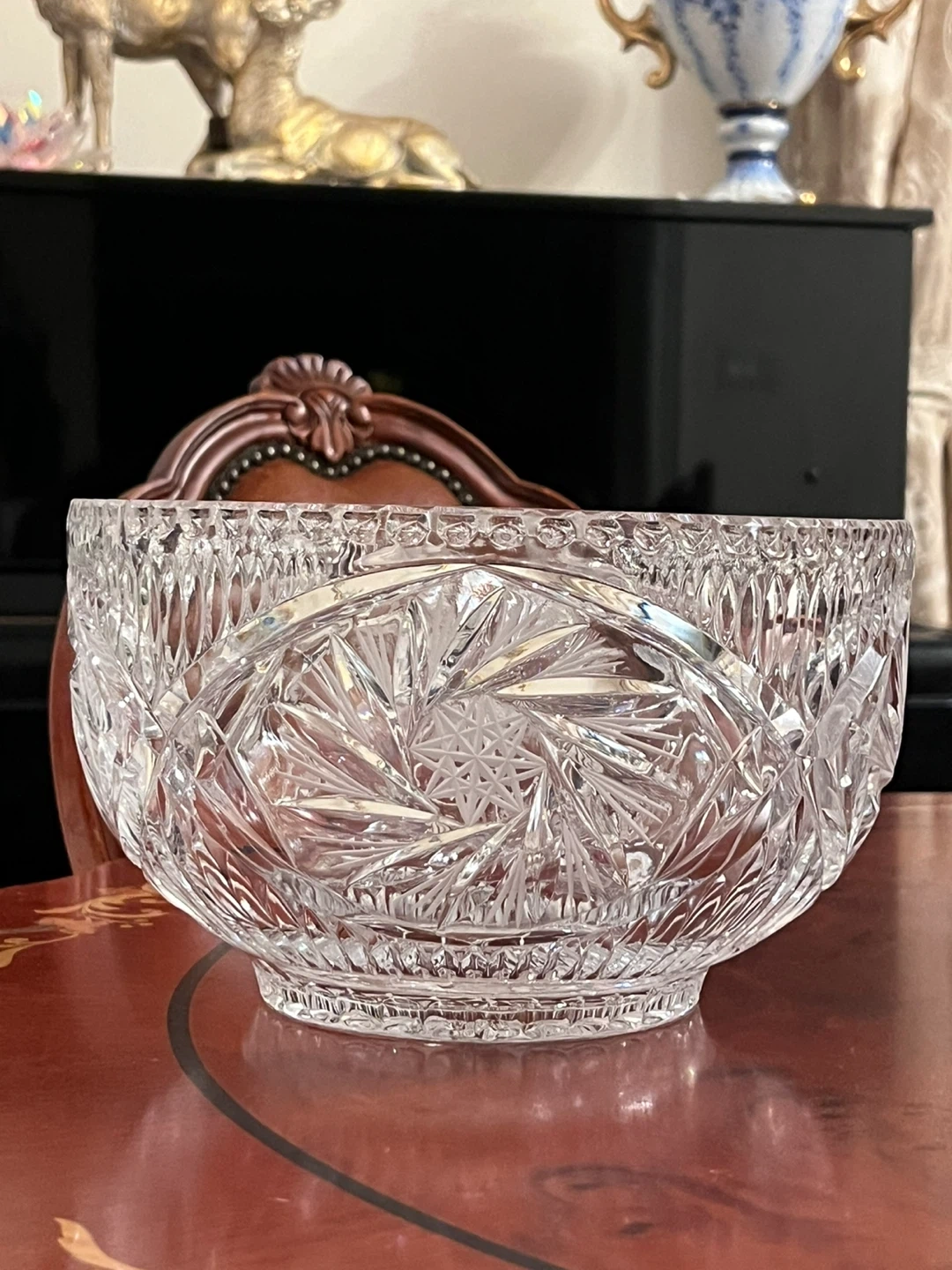 Beautiful serving bowl with intricate little. cut glass detailing. Made from clear crystal glass. Its elegant design makes it a lovely addition to any table setting.