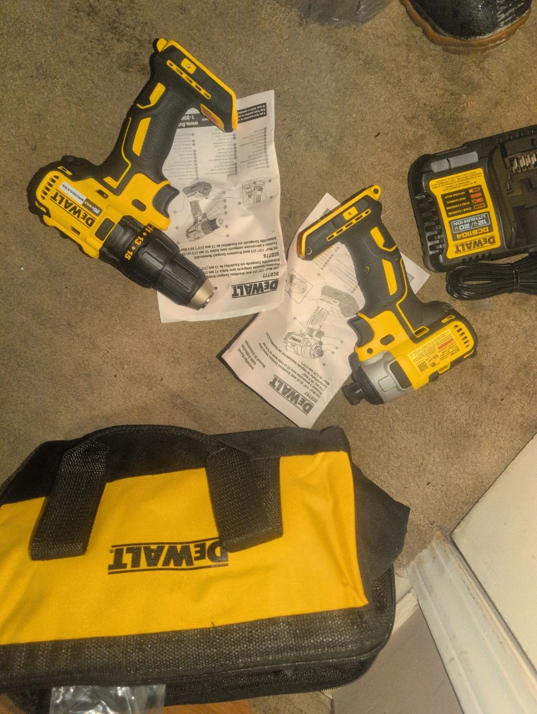 This DeWalt 20V Max brushless impact driver and drill combo kit includes the DCF787 impact driver and the DCD709 drill. It also comes with a DeWalt 12V/20V lithium-ion battery charger and a DeWalt tool bag. Perfect for DIY projects and professional use!