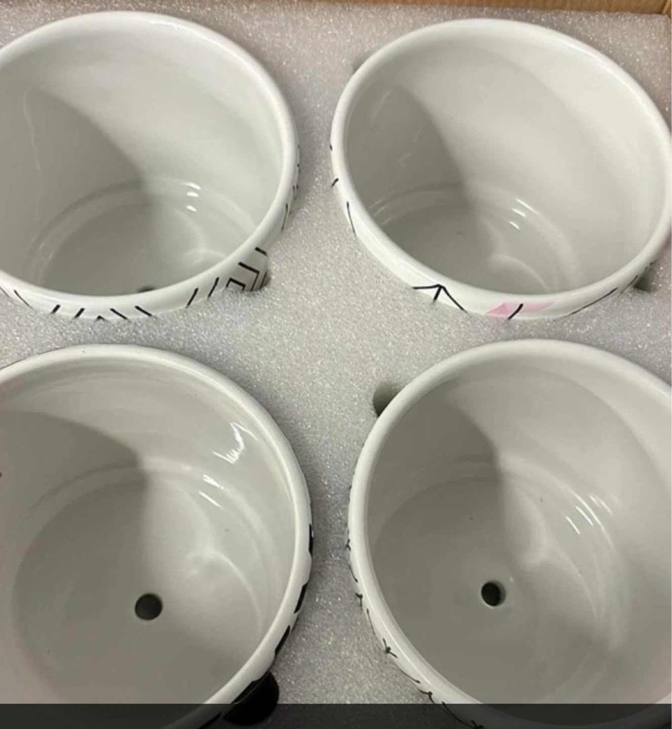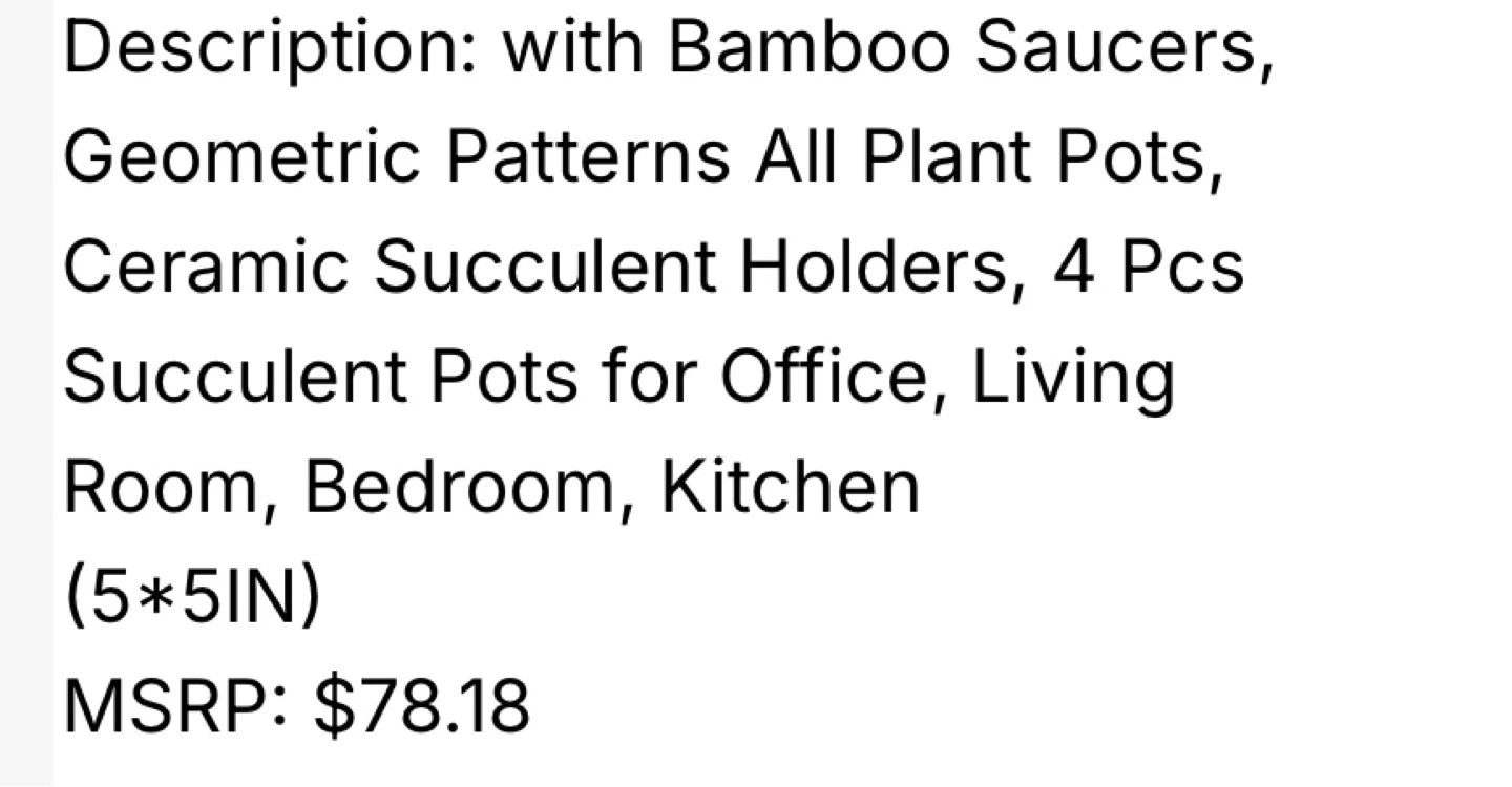 Four ceramic succulent pots featuring geometric patterns and bamboo saucers. Pots include drainage holes and measure 5 inches by 5 inches. Great for adding a touch of style to your office or living space! Pick up from the border of Brampton and Caledon. Mayfield and Kennedy area.