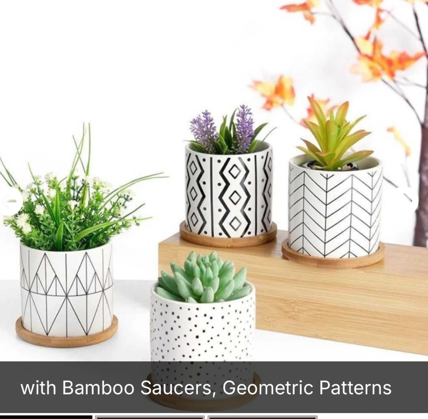Set of 4 Ceramic Succulent Pots with Bamboo Saucers