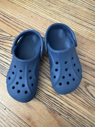 These blue Crocs were my son's and are in great condition. They are a size C10, perfect for boys aged 4-5 years old. Let me know if you have any questions!