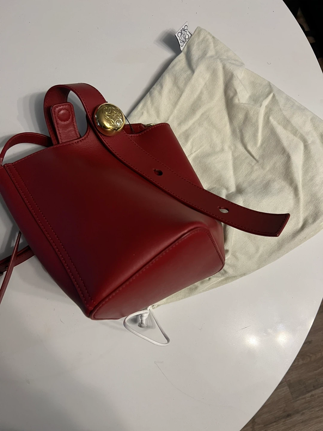 Selling a beautiful Loewe Balloon bucket bag in red leather! It's in great condition and comes with the original dust bag. This stylish bag is perfect for everyday use and adds a pop of colour to any outfit