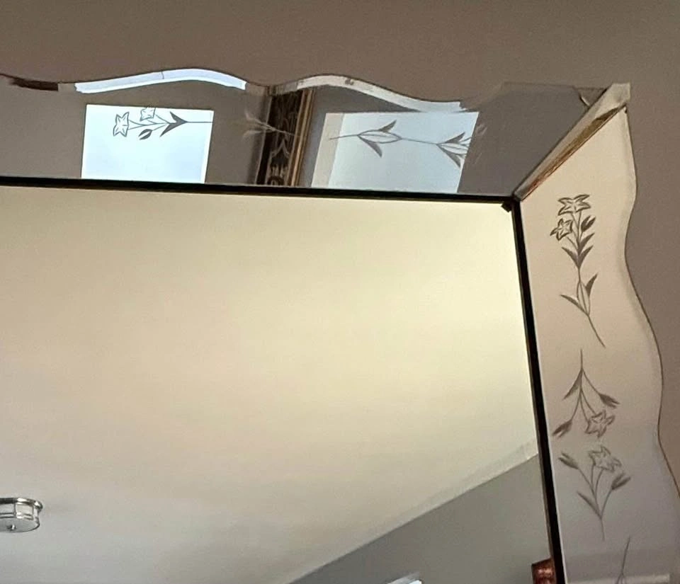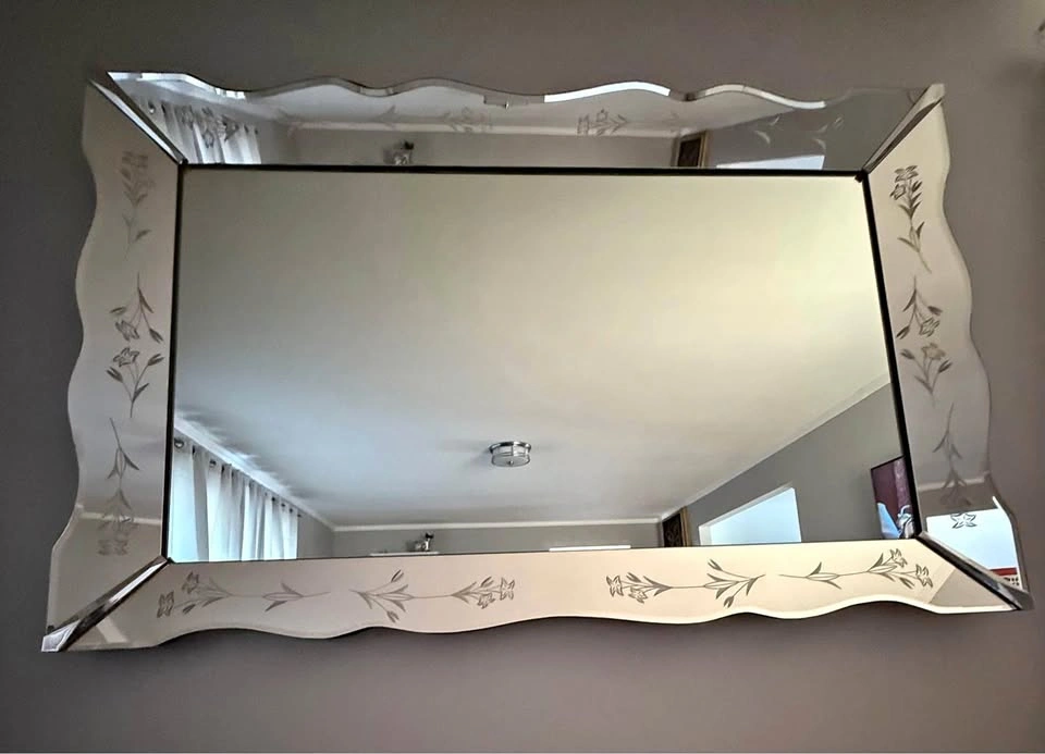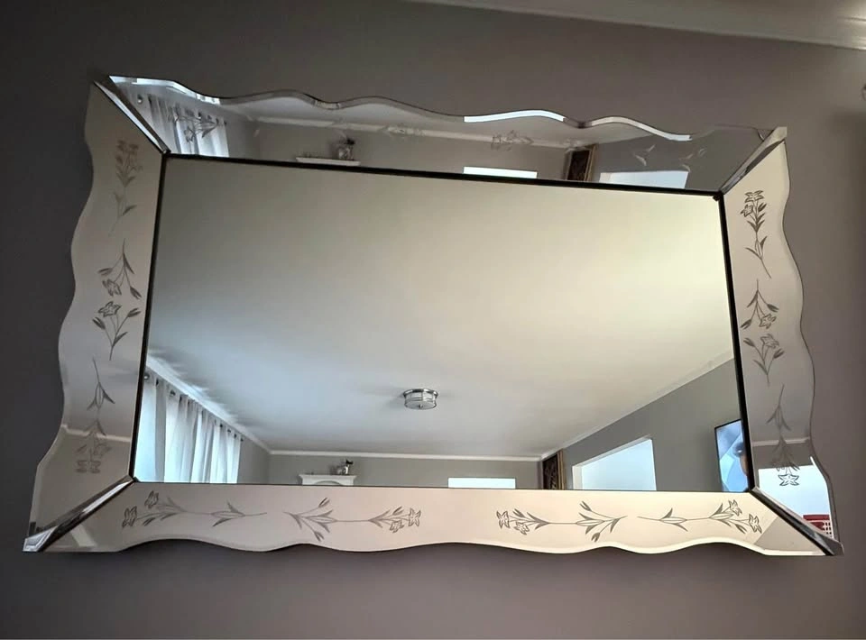 Venetian Mirror w/ Scalloped Etched Floral Border 60'' x 40''