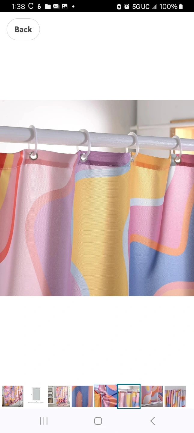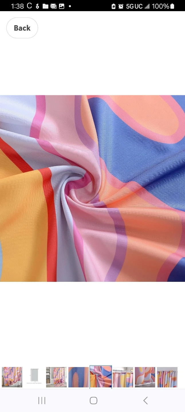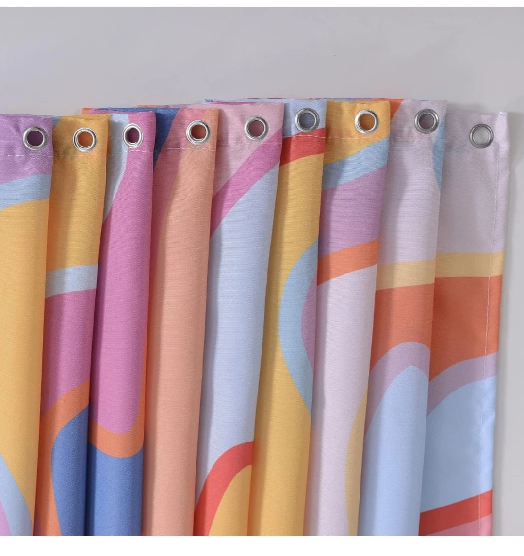 Add a pop of color to your bathroom with this fun shower curtain. Features a vibrant retro swirl pattern in shades of pink, orange, yellow, and blue. Includes shower rings. Machine washable. 72 inches long, 36 inches wide. Polyester material.