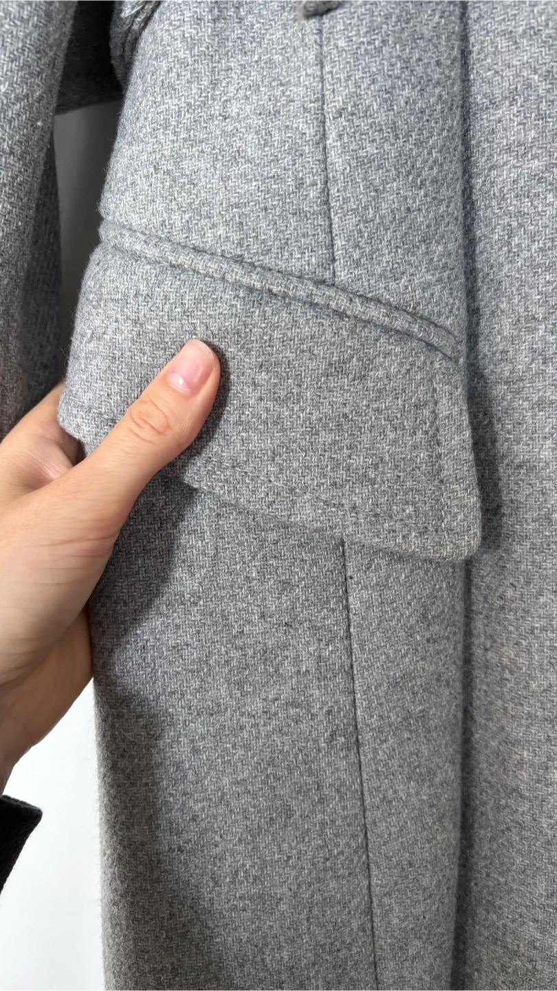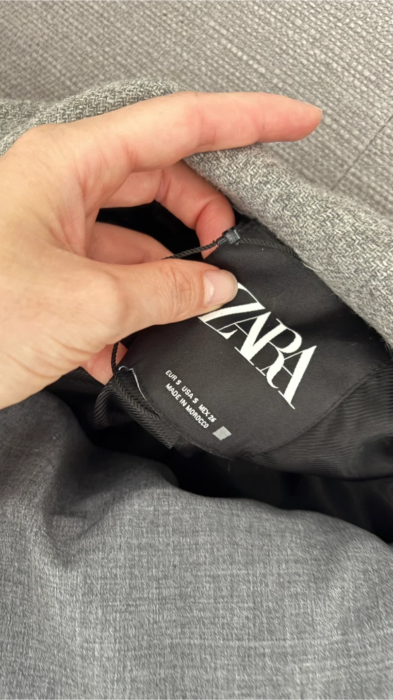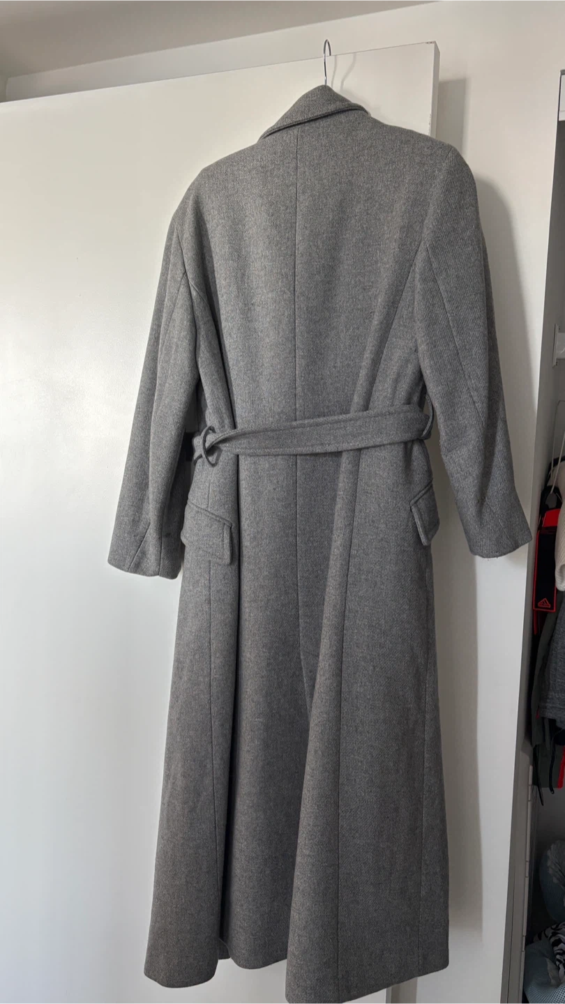 Selling a Zara grey wool blend coat in size S. It has a belted waist and a stylish, classic look. Perfect for keeping warm during the colder months!