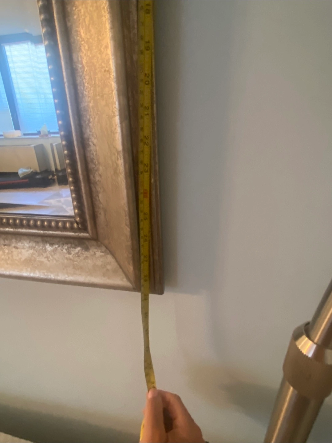 Can easily be used as a standing mirror. It's in great condition and ready to brighten up your space! The frame has a lovely detailed design. The mirror measures approximately 62 inches in height and 29 inches in width.