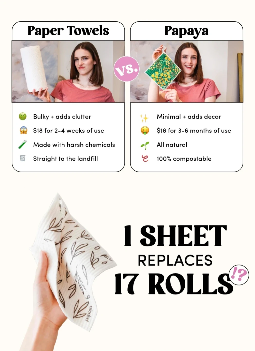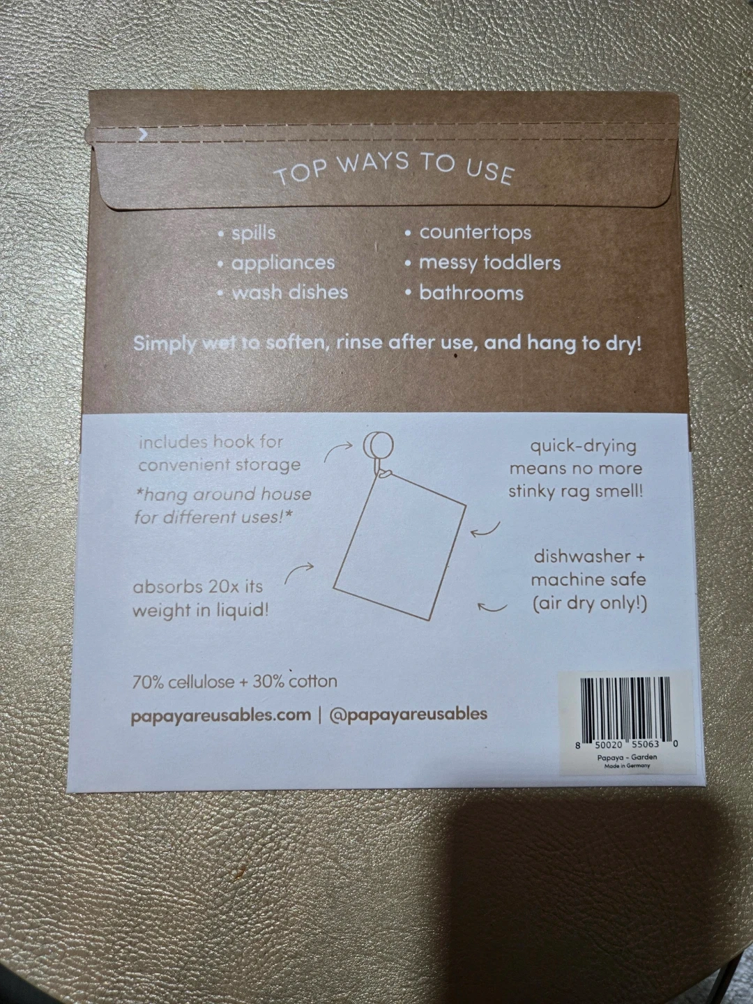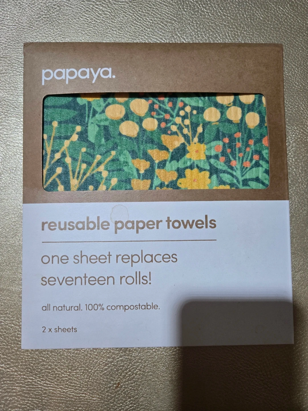 I'm selling a Papaya reusable paper towel! It's a sustainable alternative to traditional paper towels. It features a cute floral design and is perfect for cleaning up spills in the kitchen or bathroom