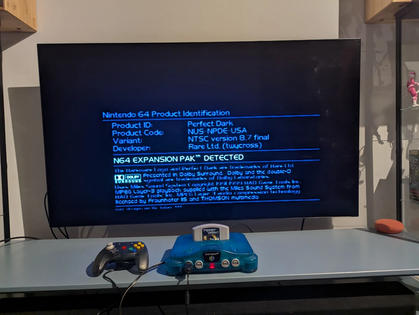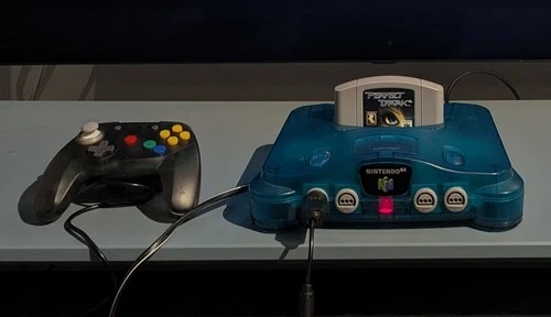 Includes: Ice Blue console with AV and power cables, Retro Fighters Smoke Grey Brawler 64 Gamepad, and N64 expansion pak. The game is NOT included. Please review images and ask any questions before buying. More images can be provided by request.