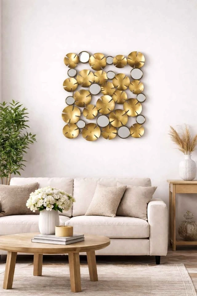 Modern Gold Metal Wall Art/Center Table Decor w/ Mirror Accents
